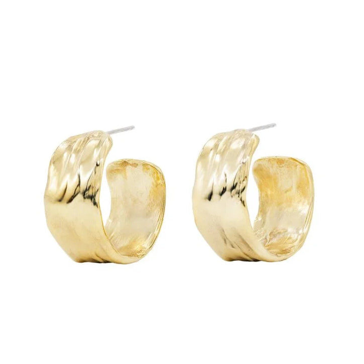 Extra wide, cuff hoop earrings with fluid texture. Bronze with sterling silver posts.