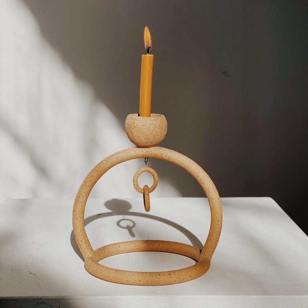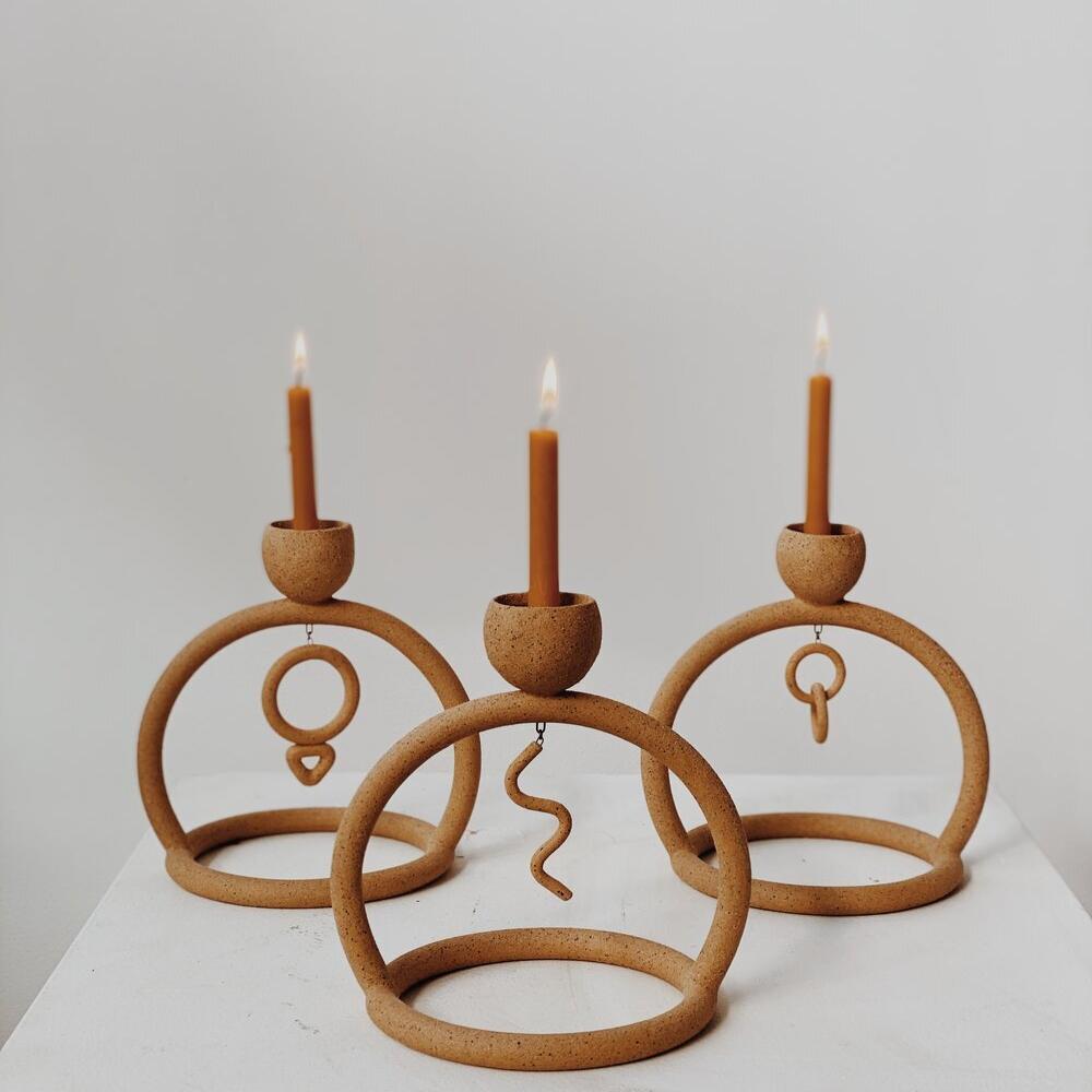 Handcrafted candle stick with a OOAK talisman for your journey.