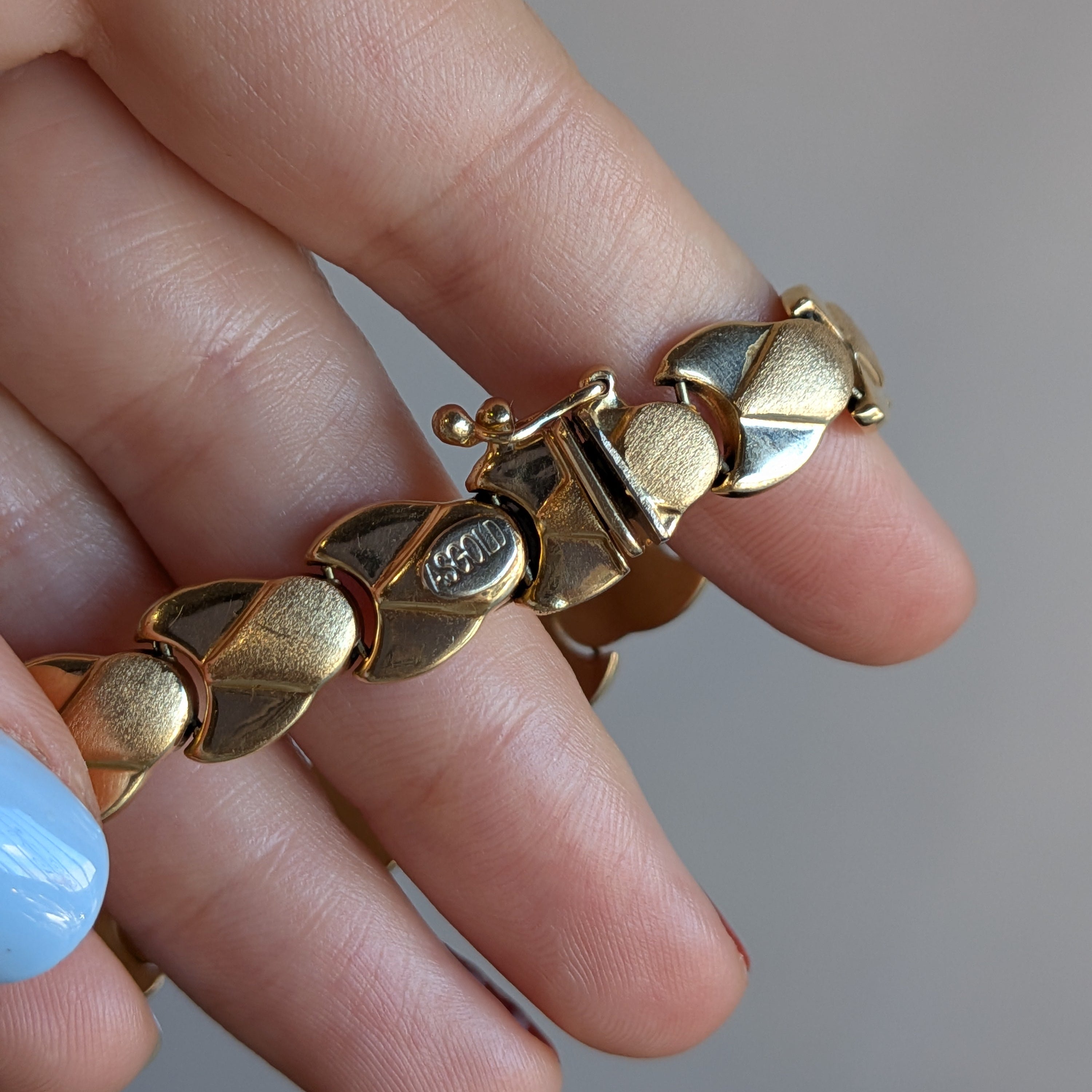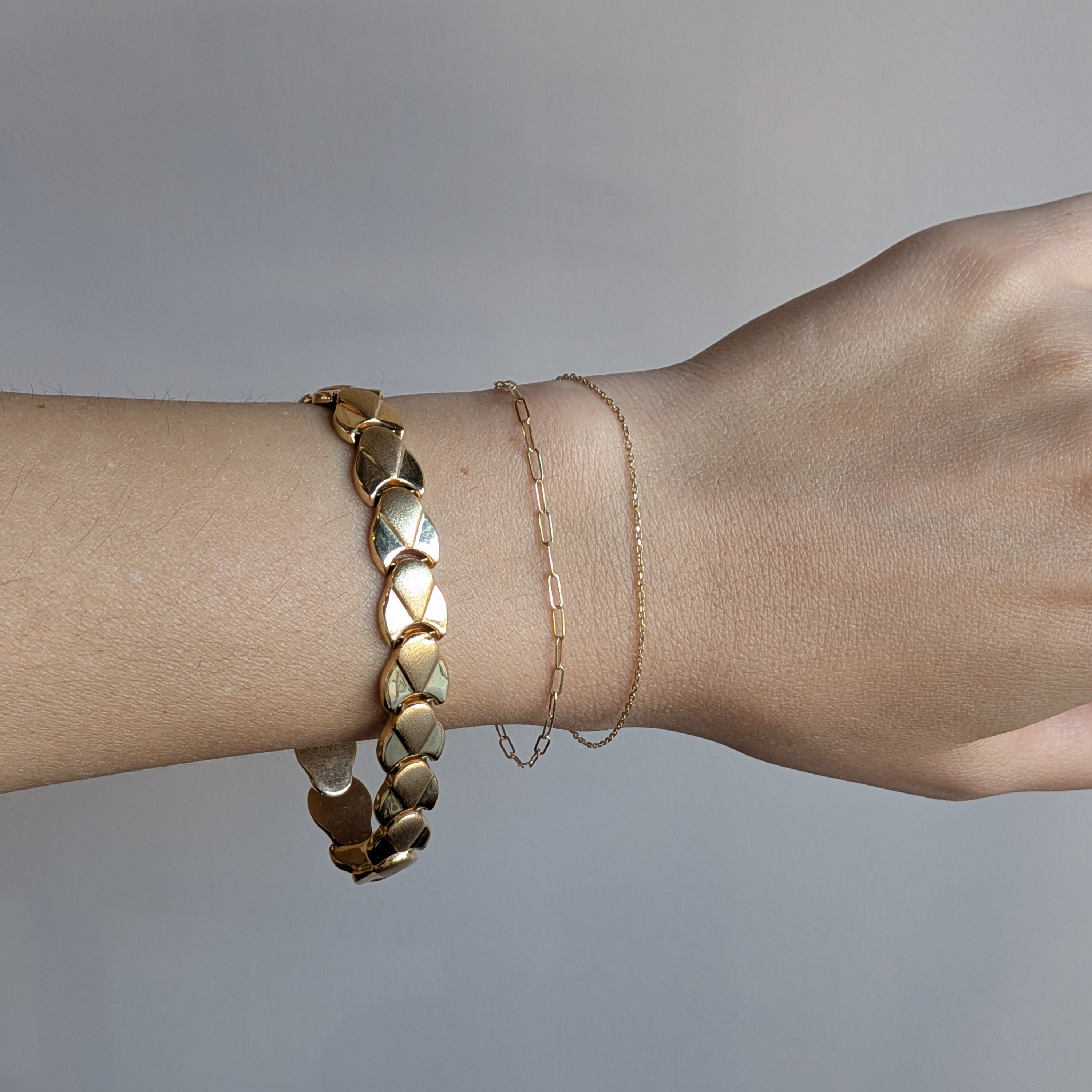 A mix of shimmery high polish and matte 14k yellow gold links to adorn your wrist.