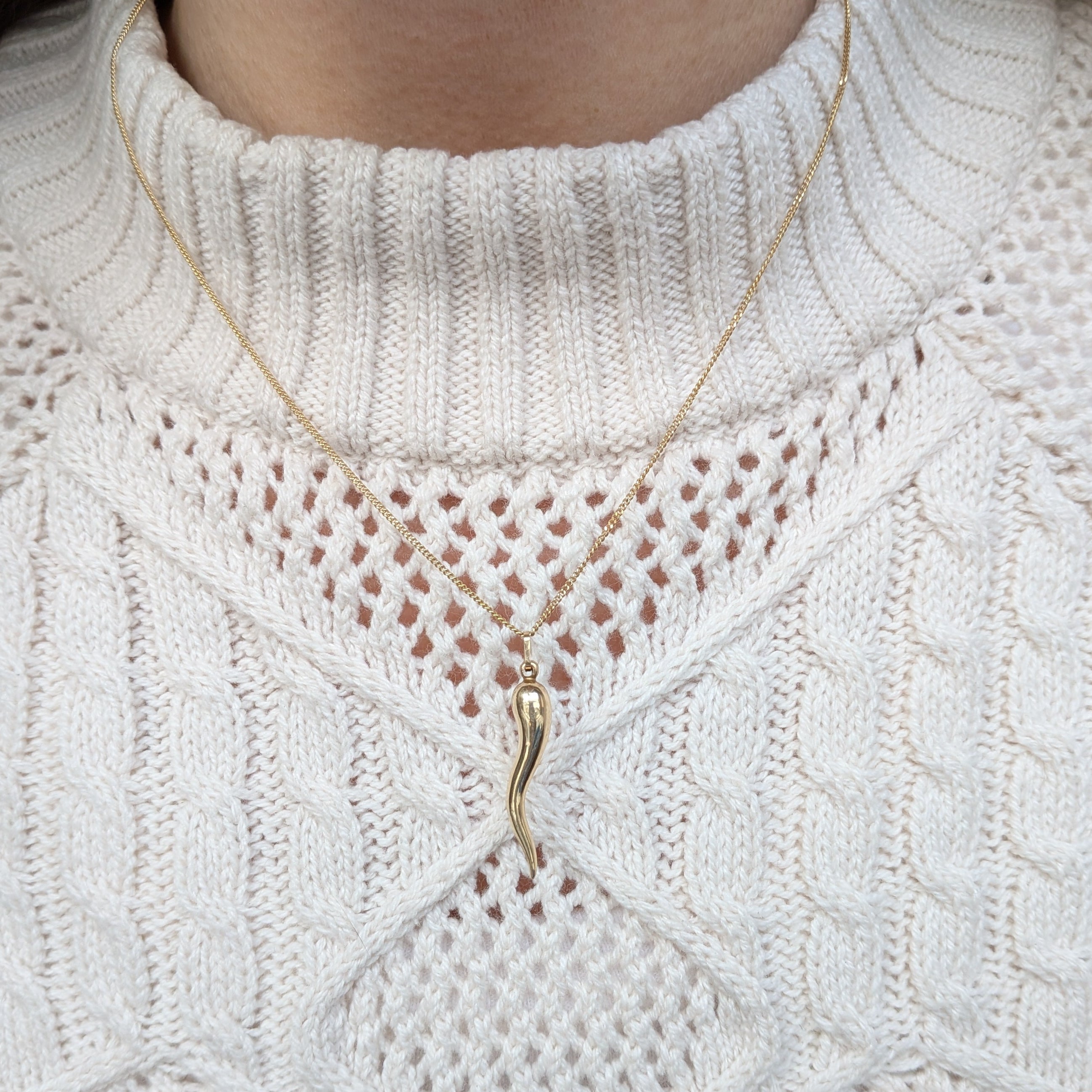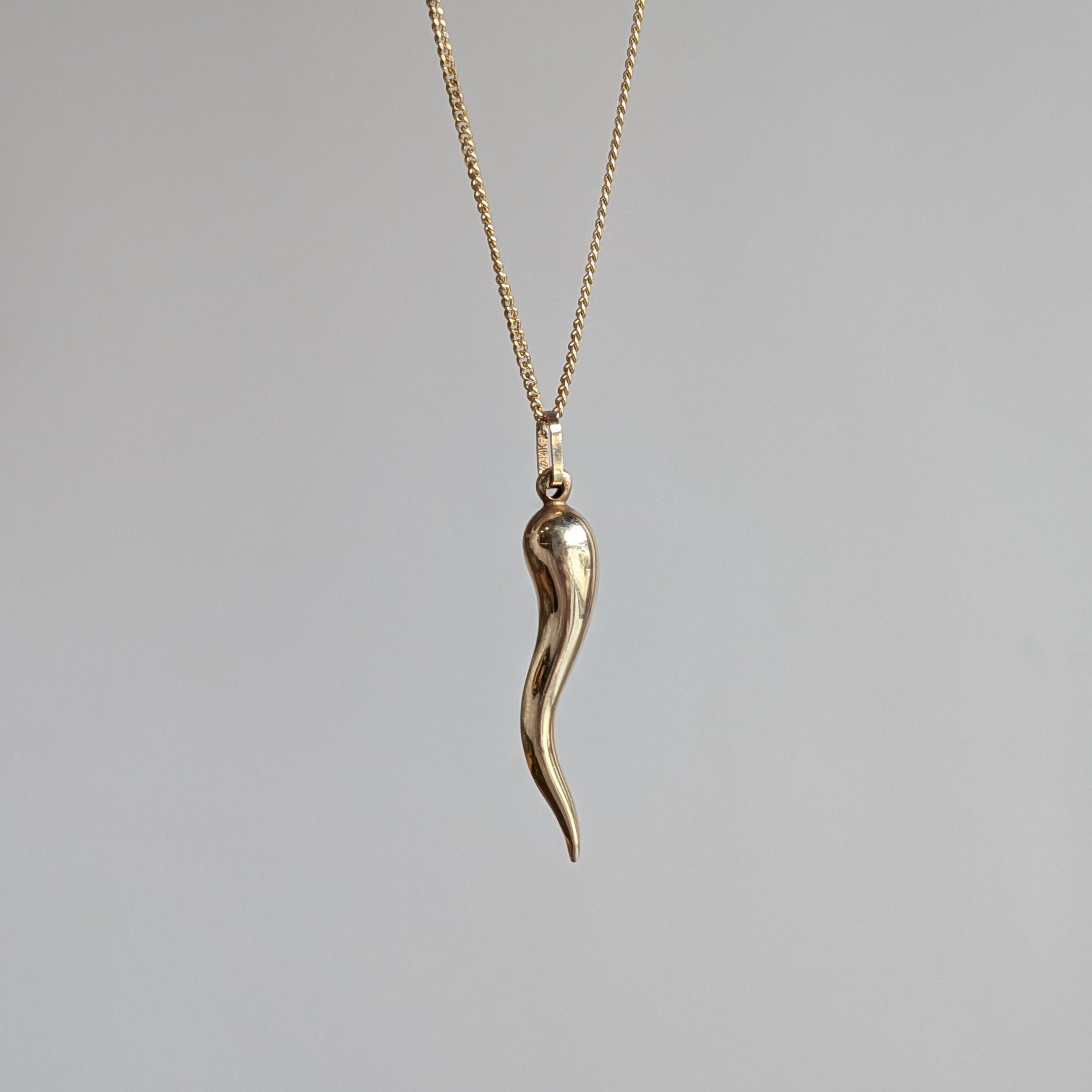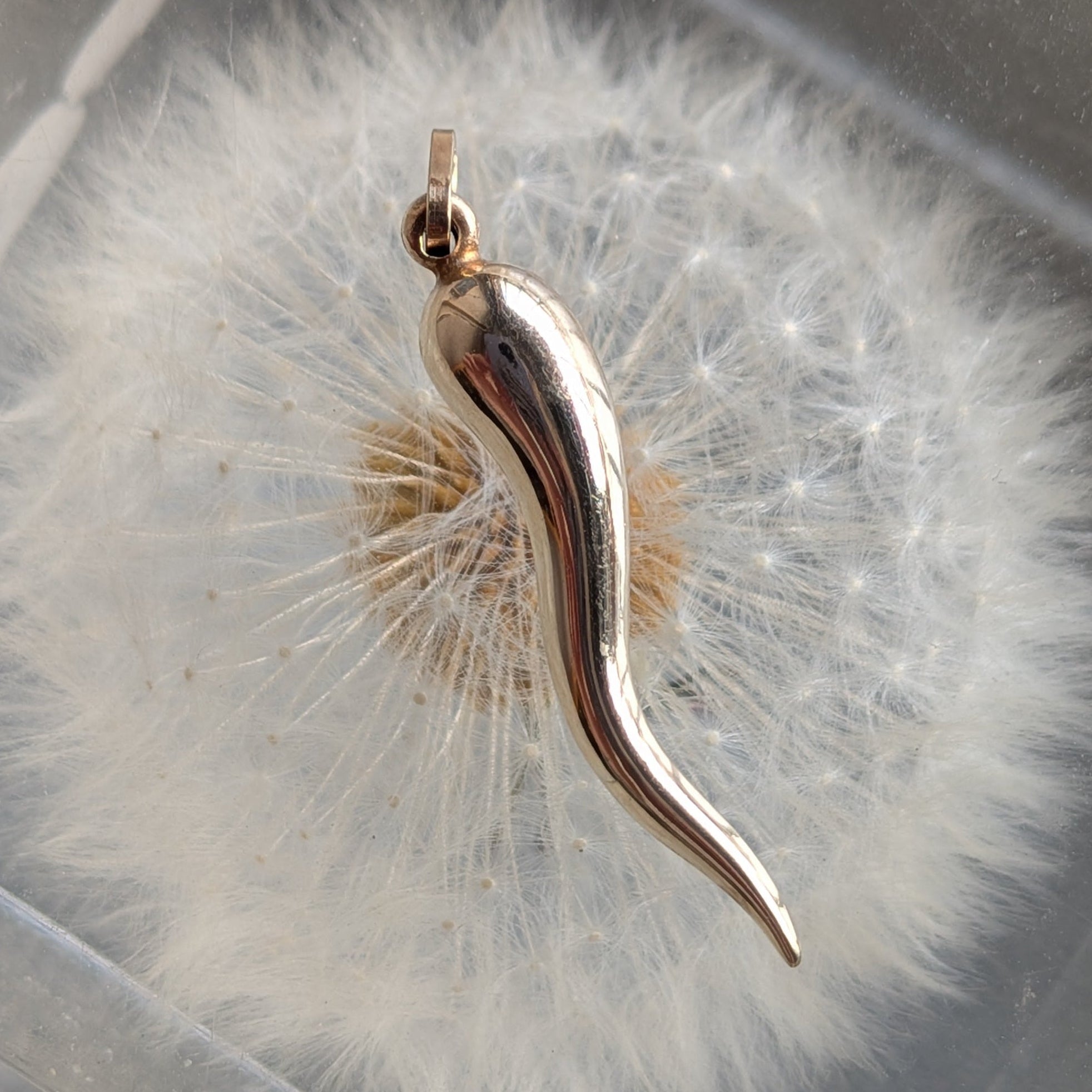 A classic, hollow form Italian horn pendant. This one is lightweight but a larger size, for a nice impact at an approachable price point.