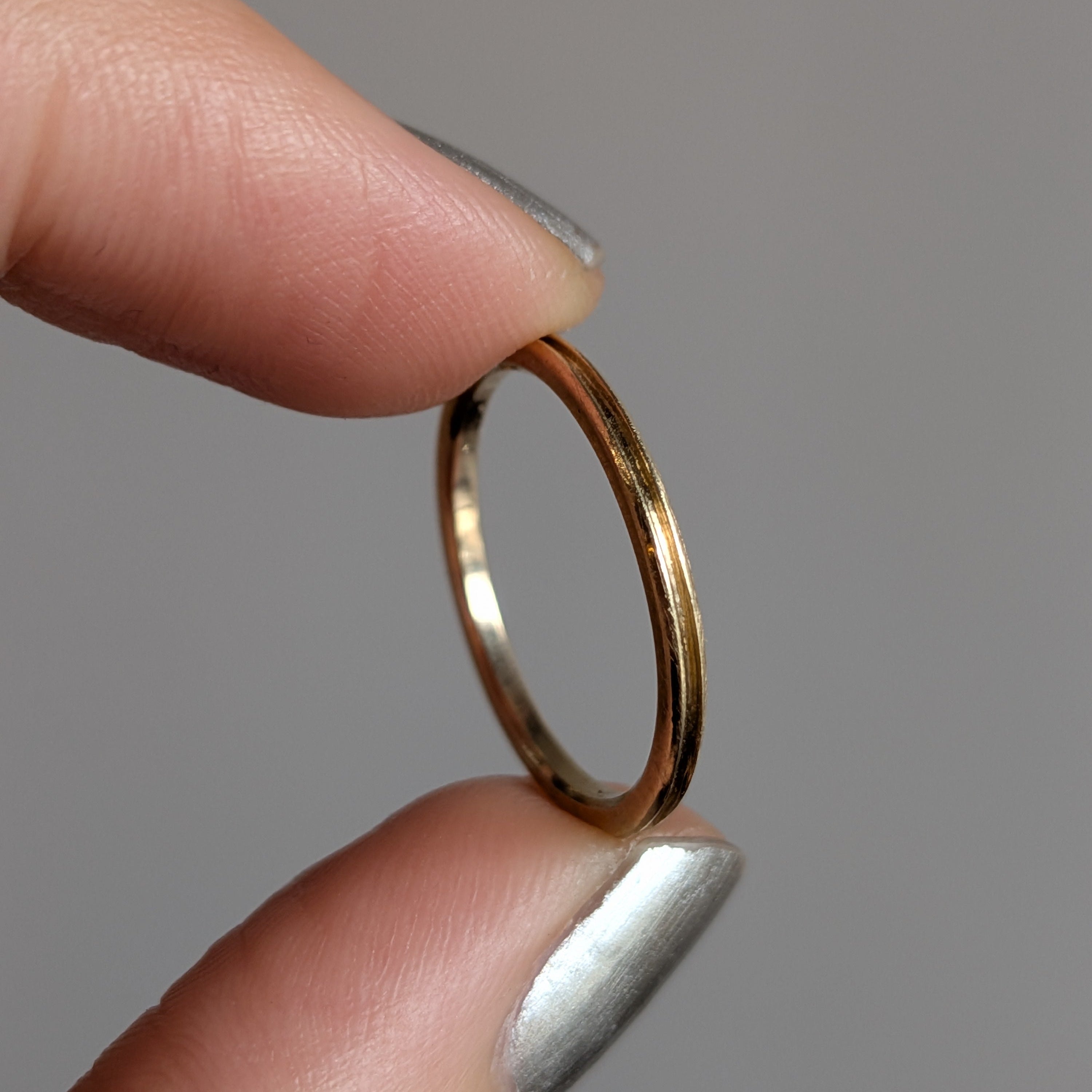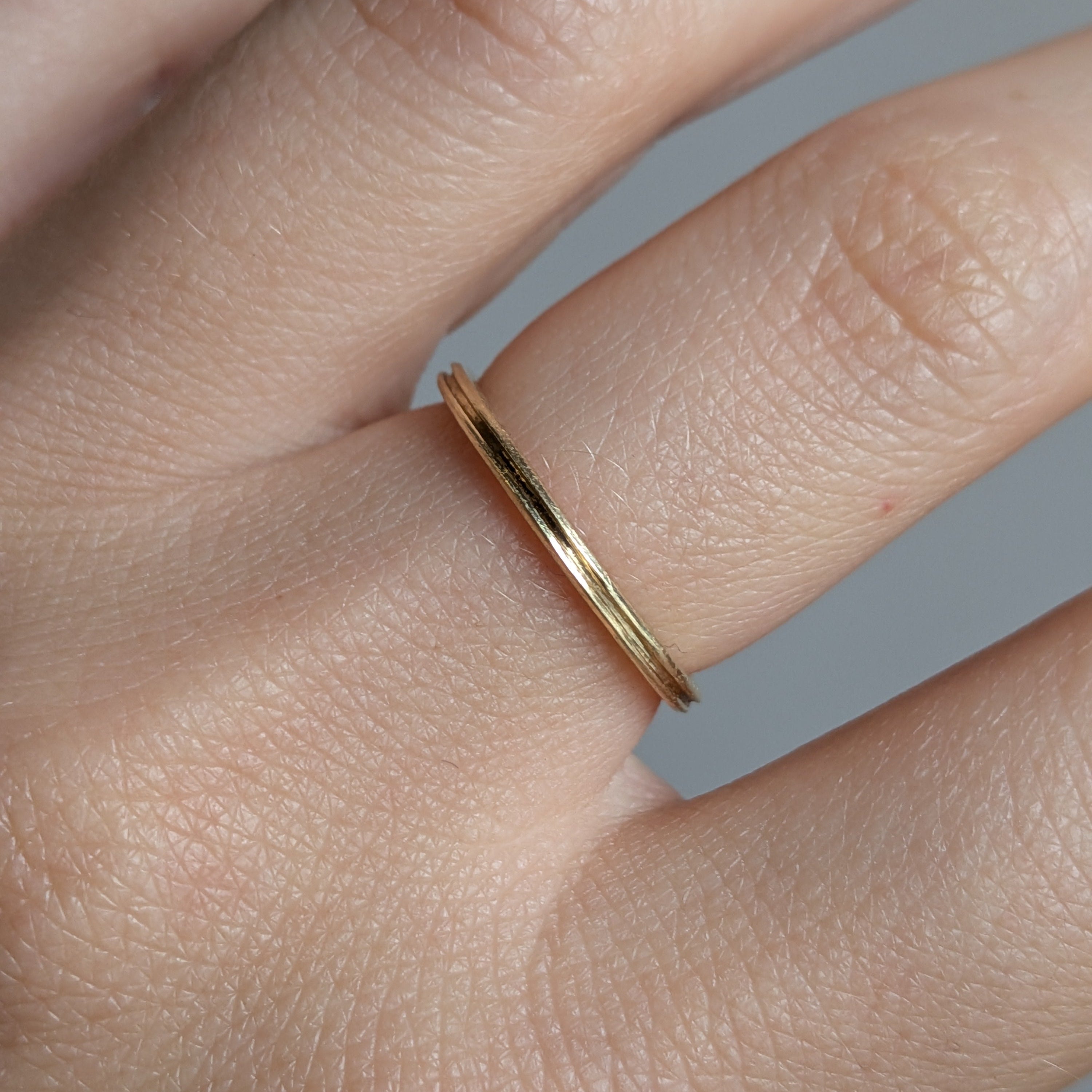 14k yellow gold stacking ring with groove detail.