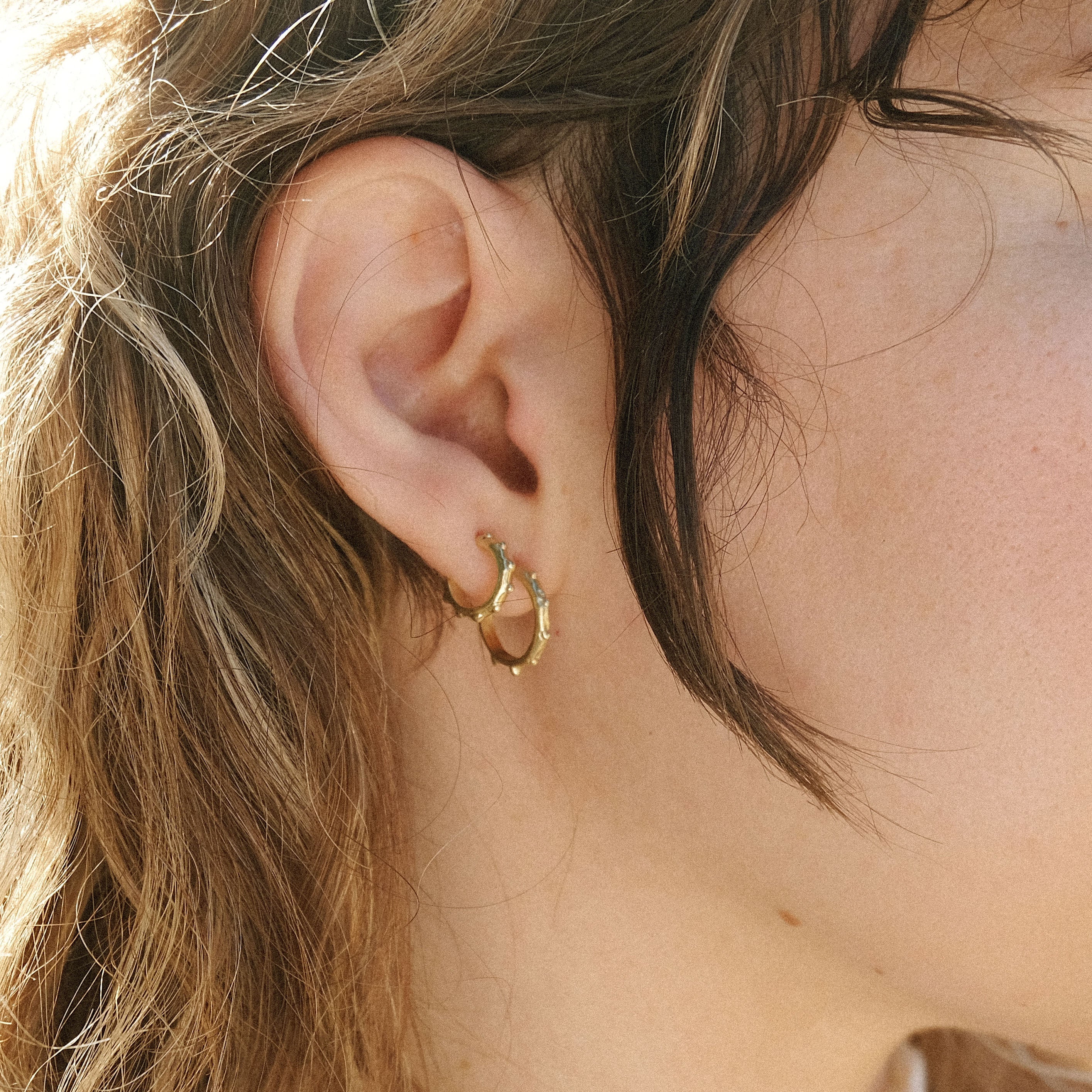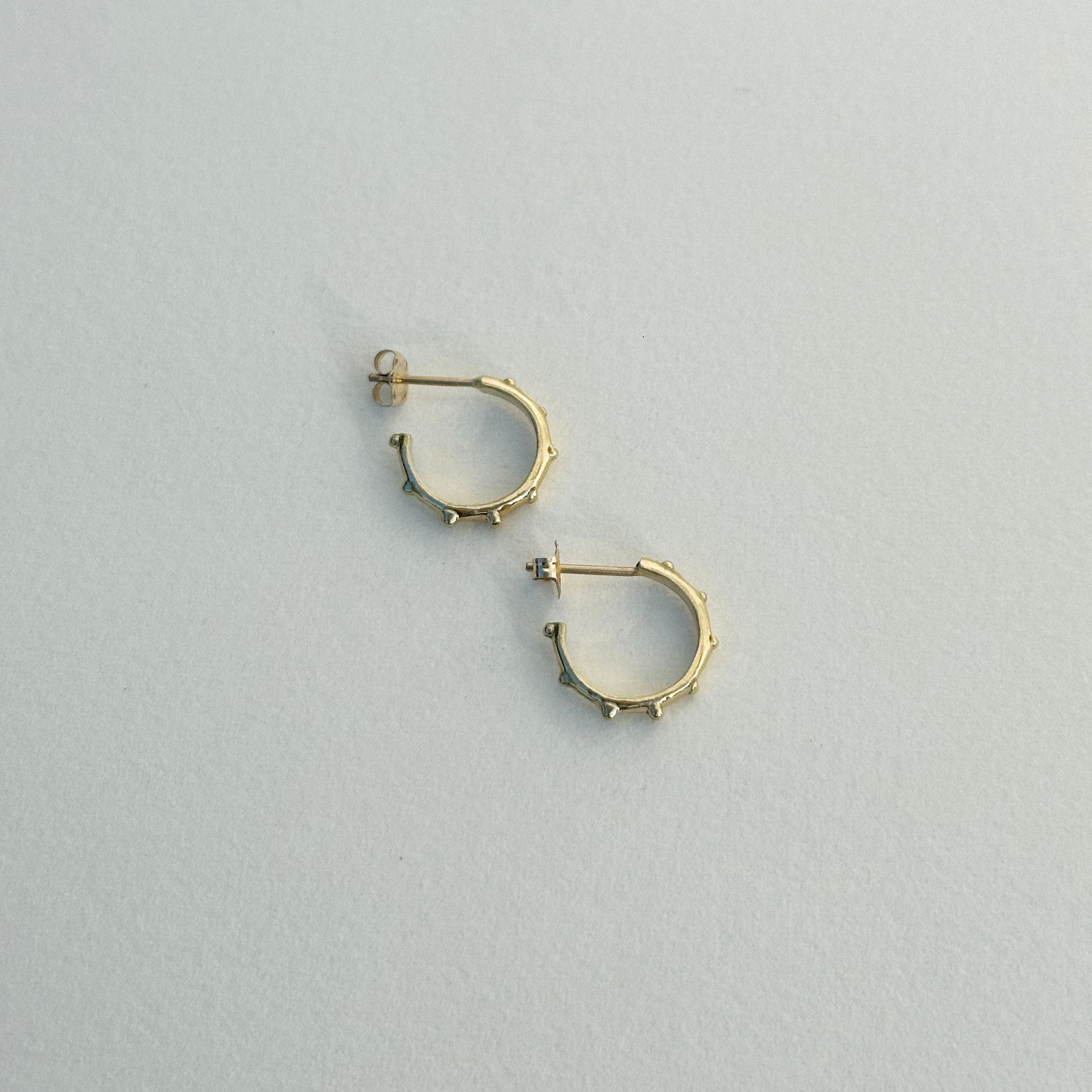 An everyday essential crafted in solid 14k yellow gold, these textural studded earrings embody a mood- their tactile surface gives an interesting edge to a classic hoop.