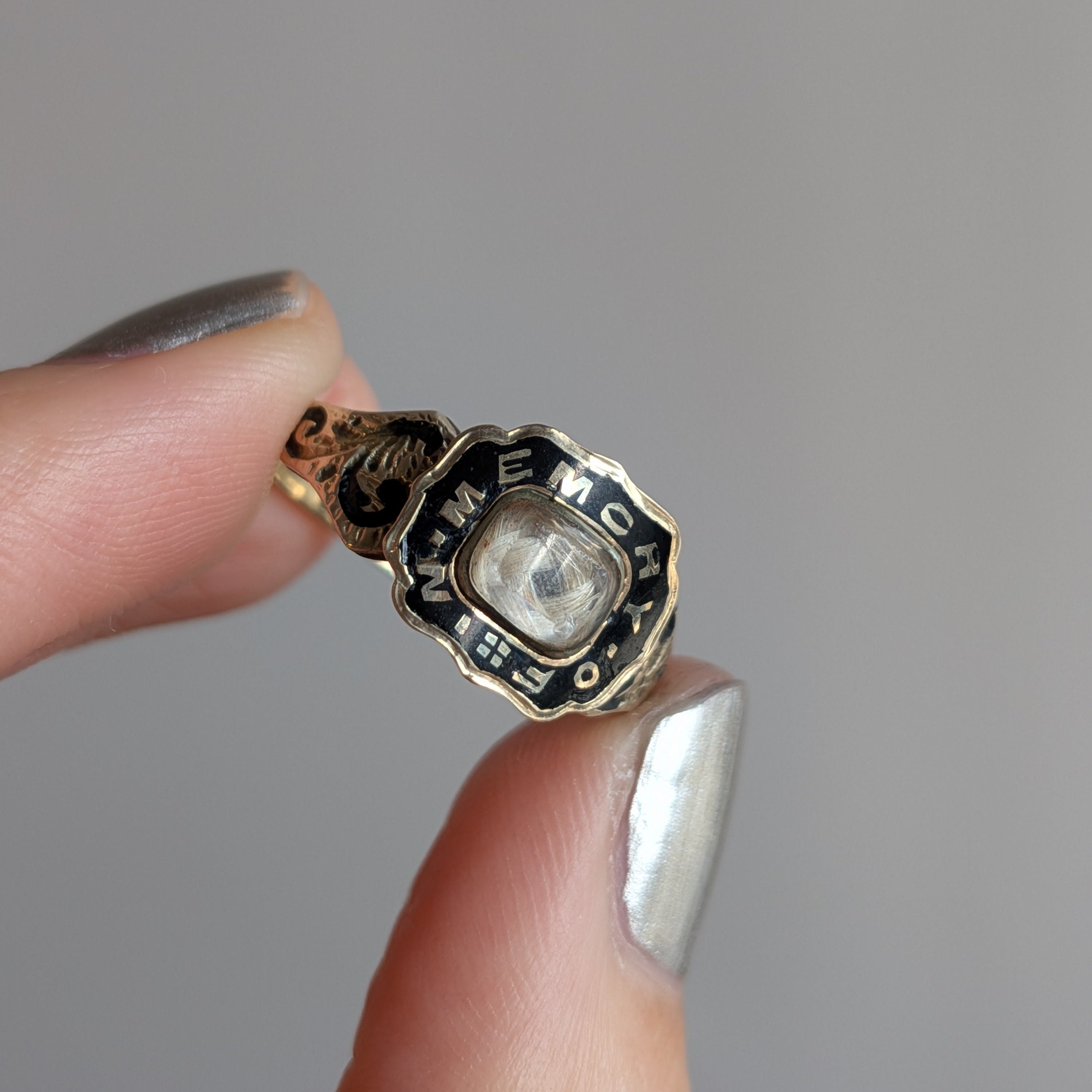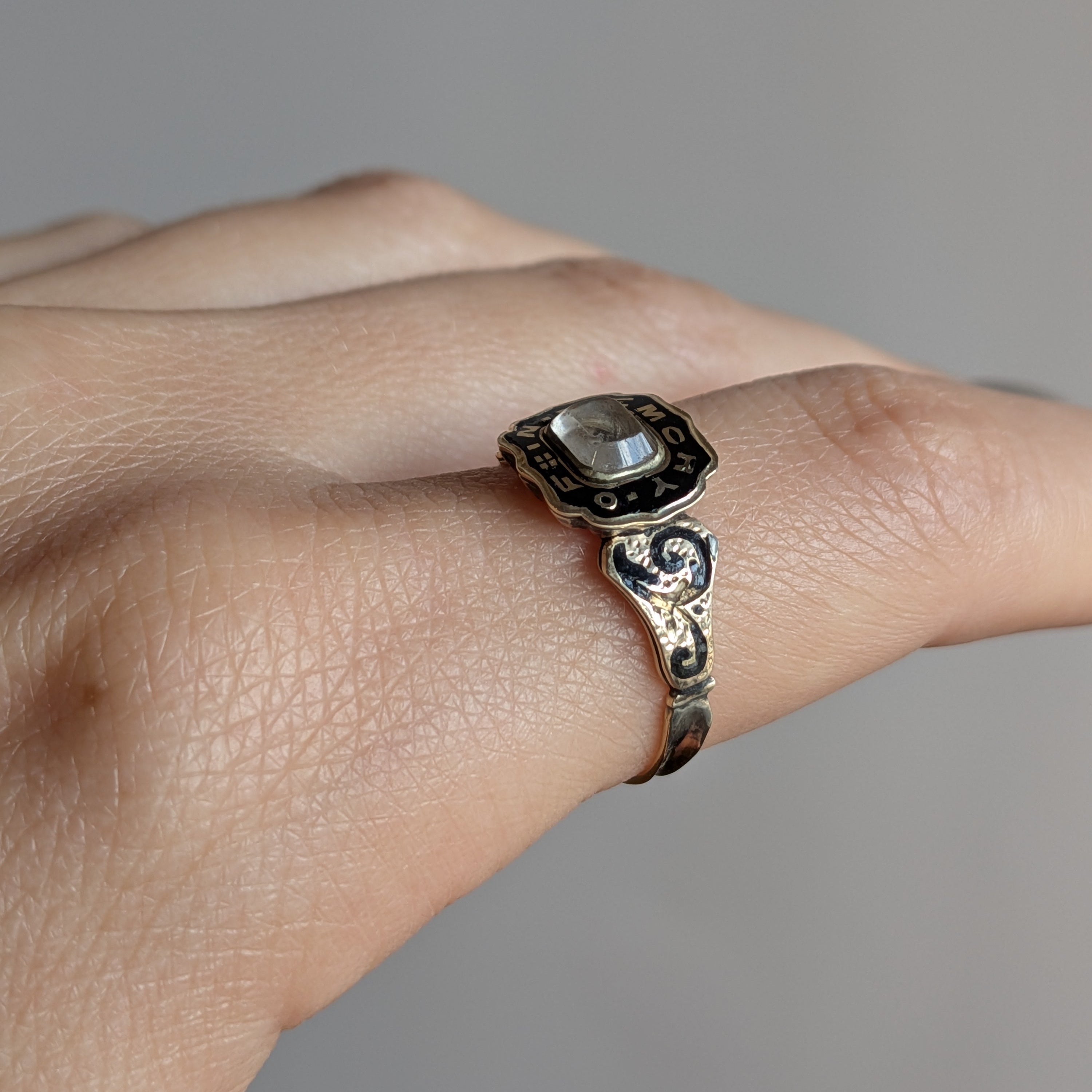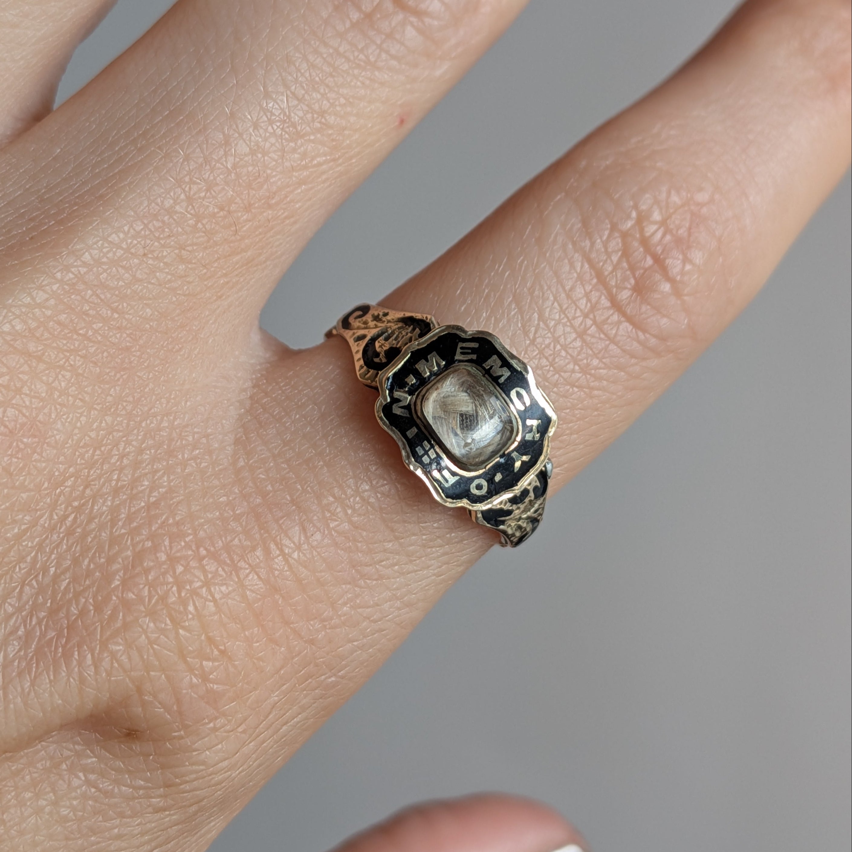 Memento Mori Ring with Woven Hair and Enamel