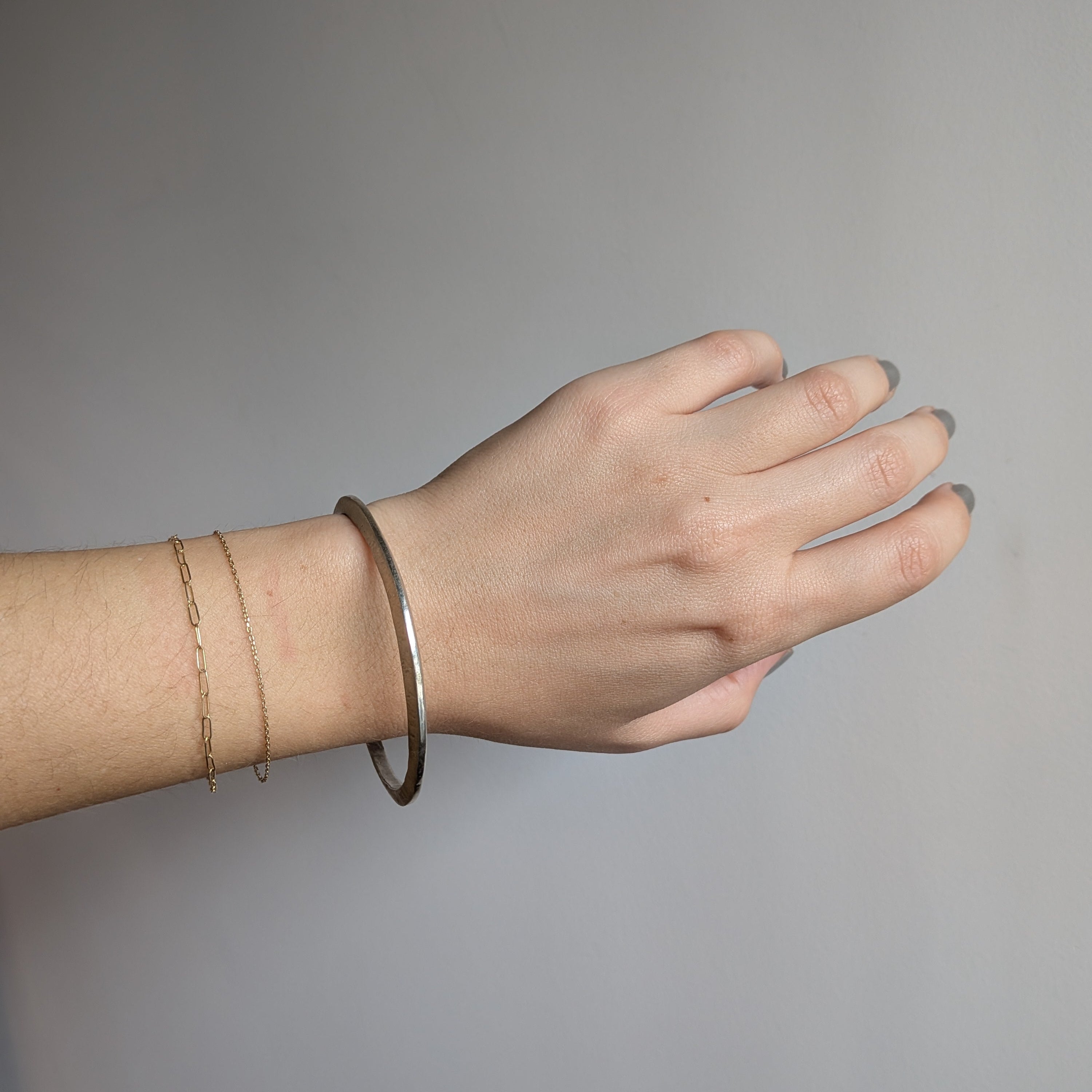 A knife edge bangle bracelet with textured sides and a mix of high shine and matte finish.