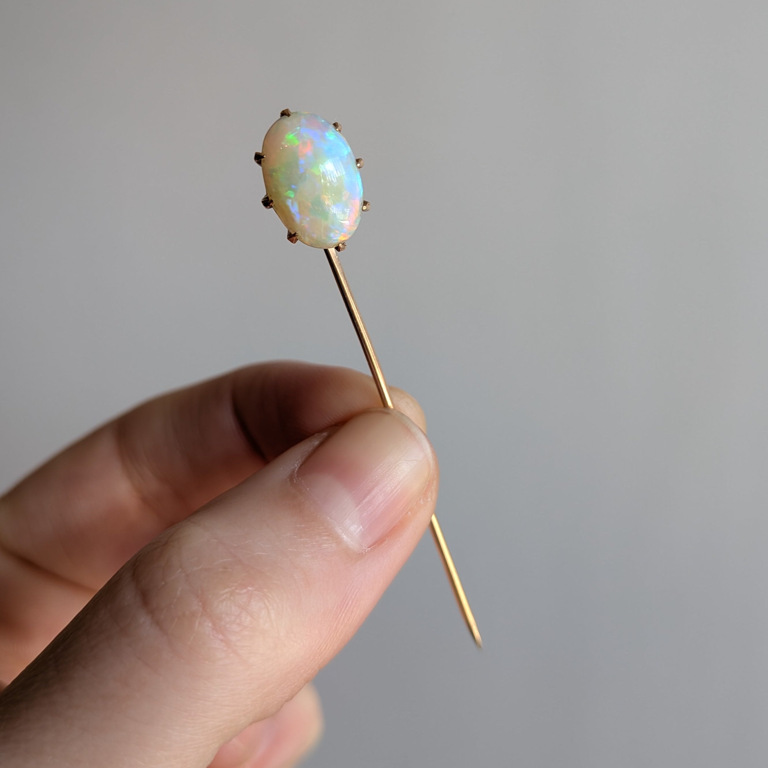So dreamy and romantic, this stickpin features a prong-set opal cabochon in 14k yellow gold.