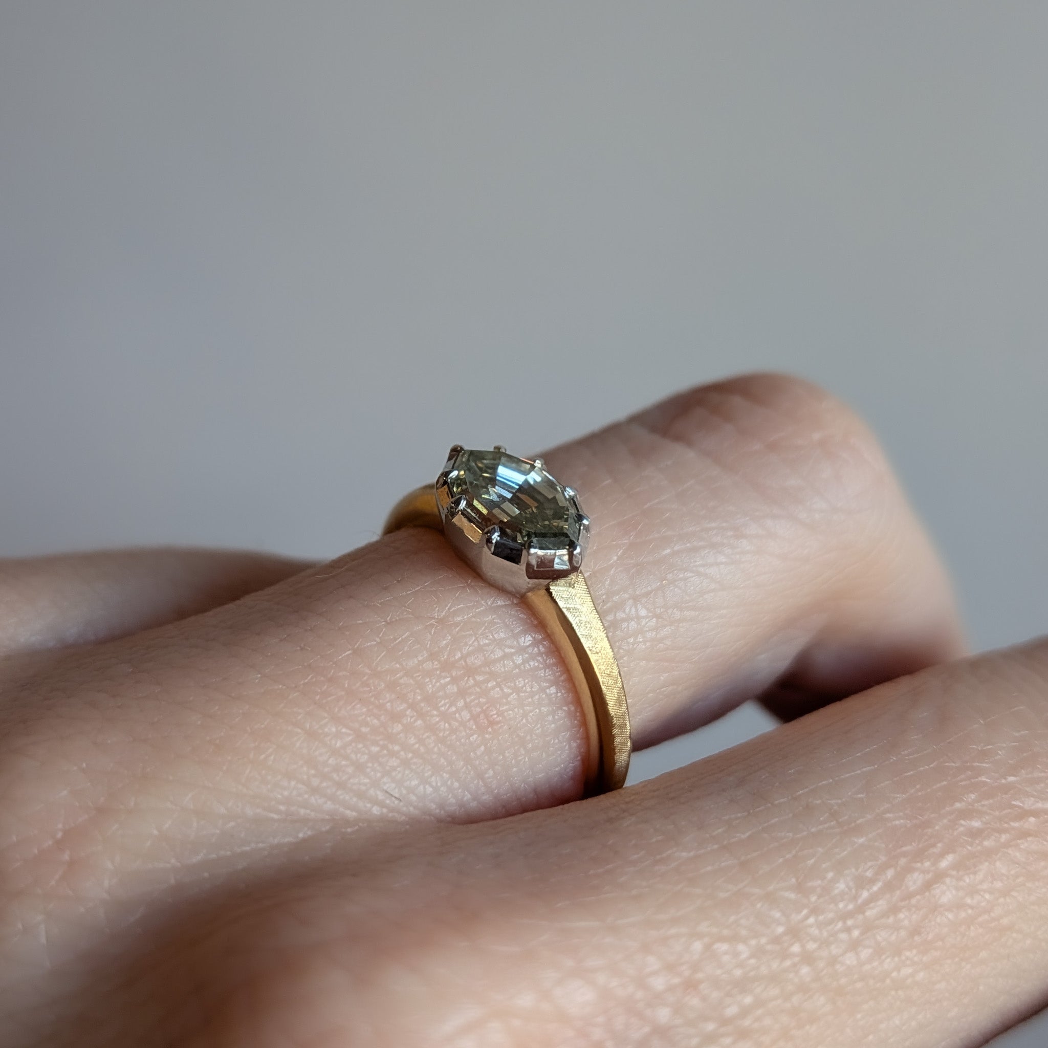 KIMA is the work of Isabel Dennis, a fine jeweler based in Oakland, CA. Isabel trained under master diamond setter Alexandre Sidorov in Antwerp, Belgium, and specializes in traditional pavé, wax carving, and diamond setting. Her custom and bespoke creations marry old world metalsmithing and setting techniques with the use of modern technology like microscopes and pneumatic engraving machines. Her designs are all hand cut and set in-house, and incorporate deliberately challenging design elements in an effort to always be advancing her craft.