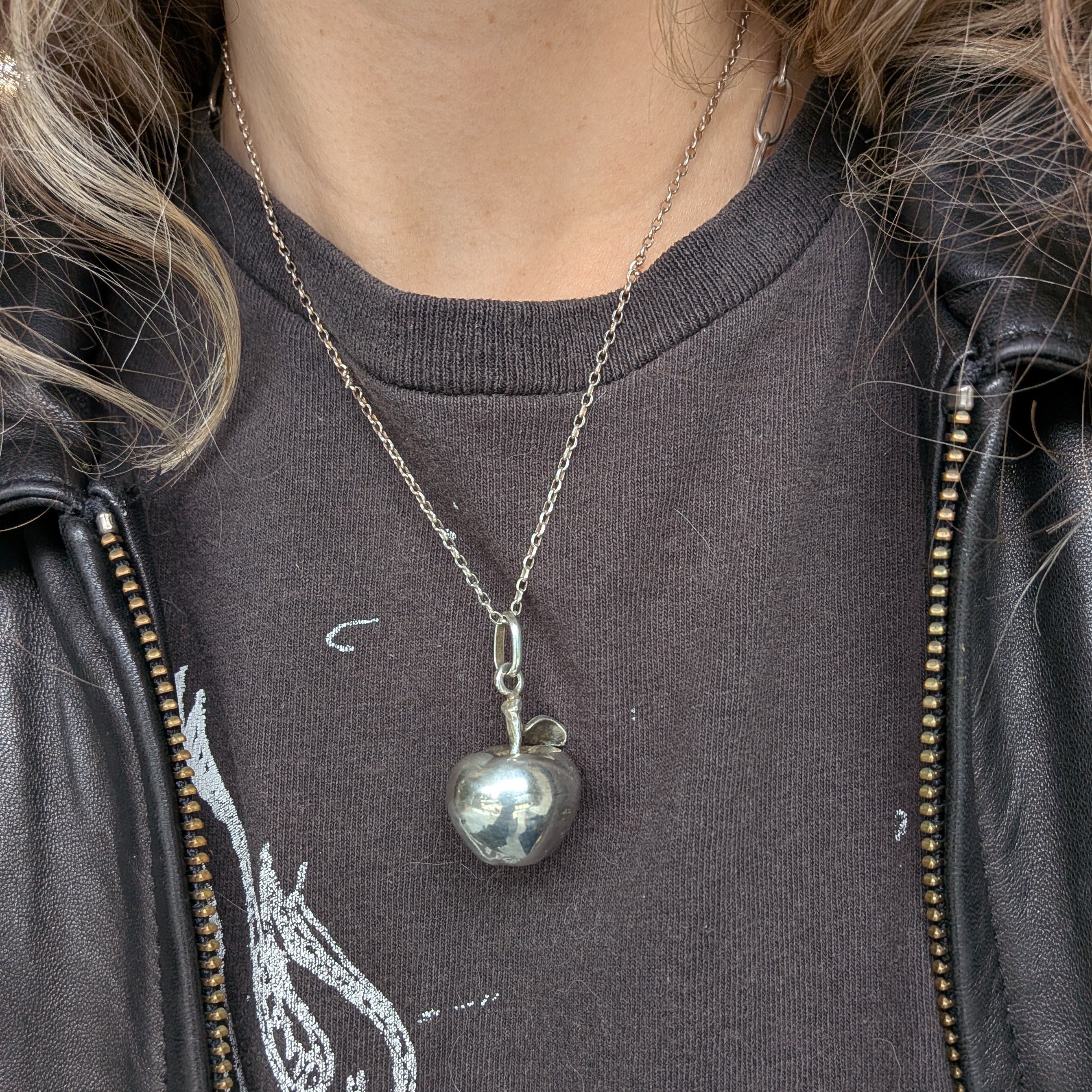 This juicy silver apple pendant is a tempting addition to any chain stack, or a standalone statement piece.
