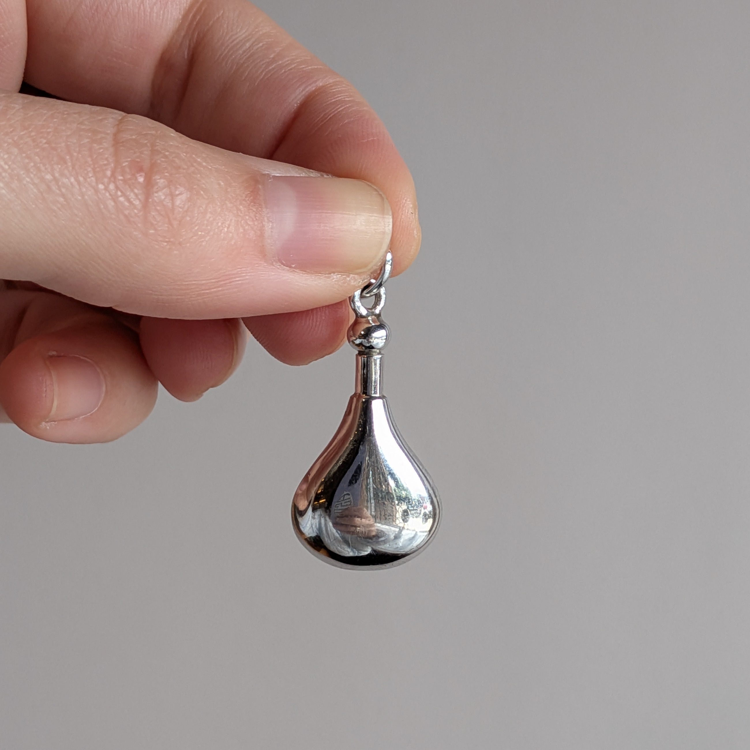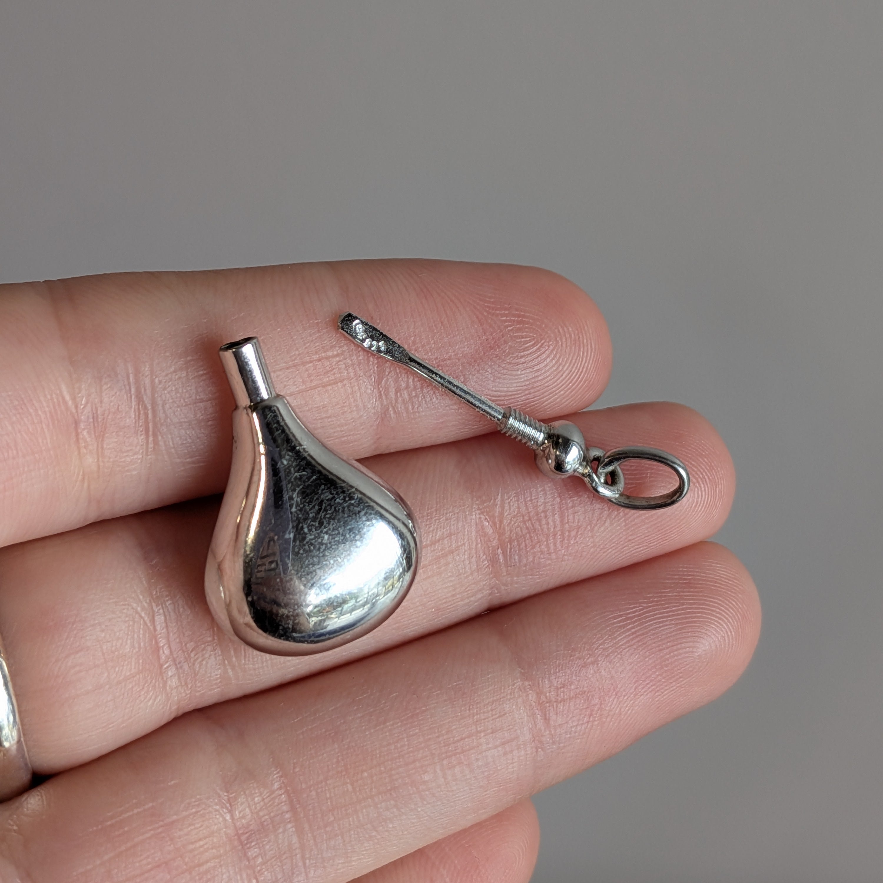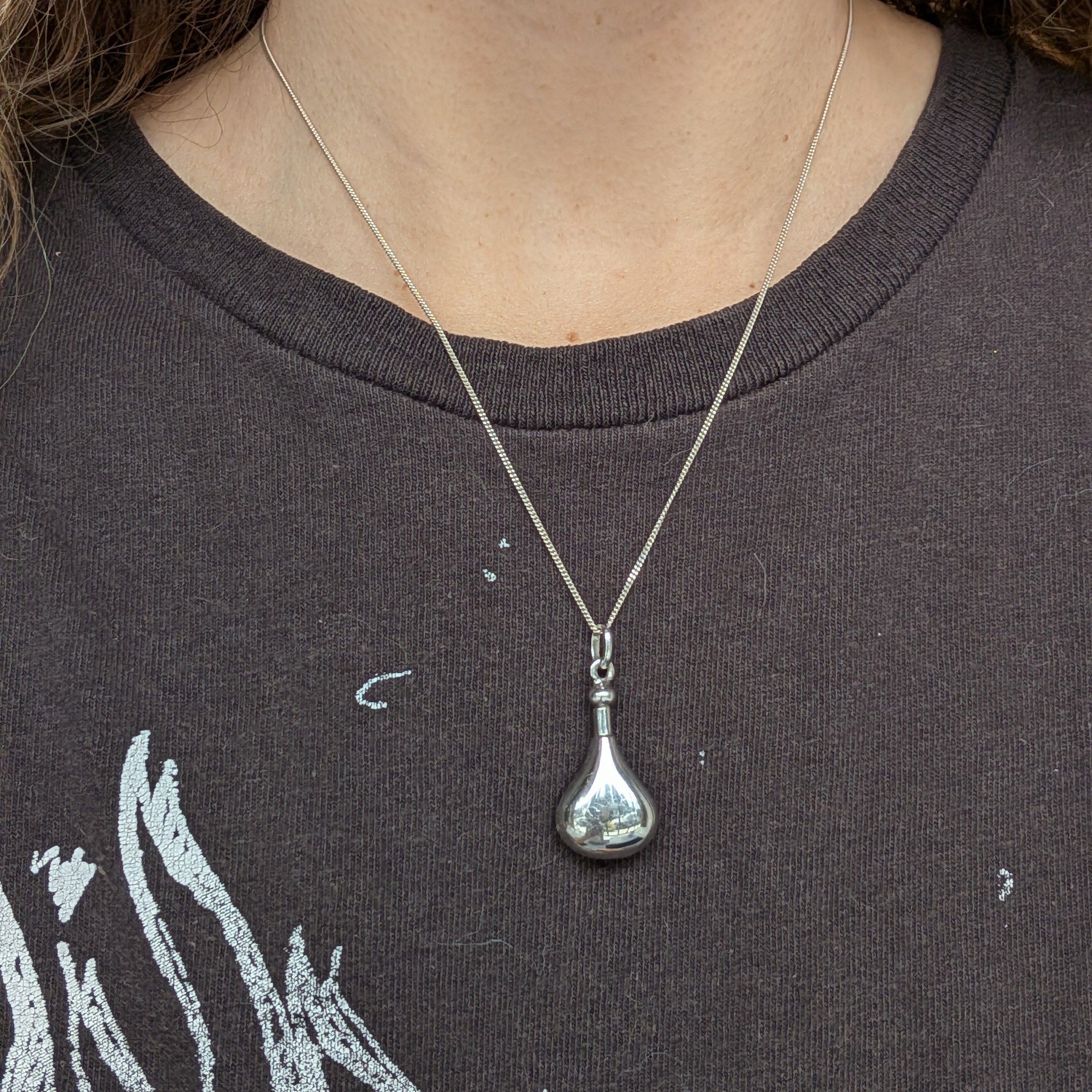 Elegance in minimalism, this shiny Taxco silver vial holds treasure, potions, perfumes, whatever your wtichy heart desires.