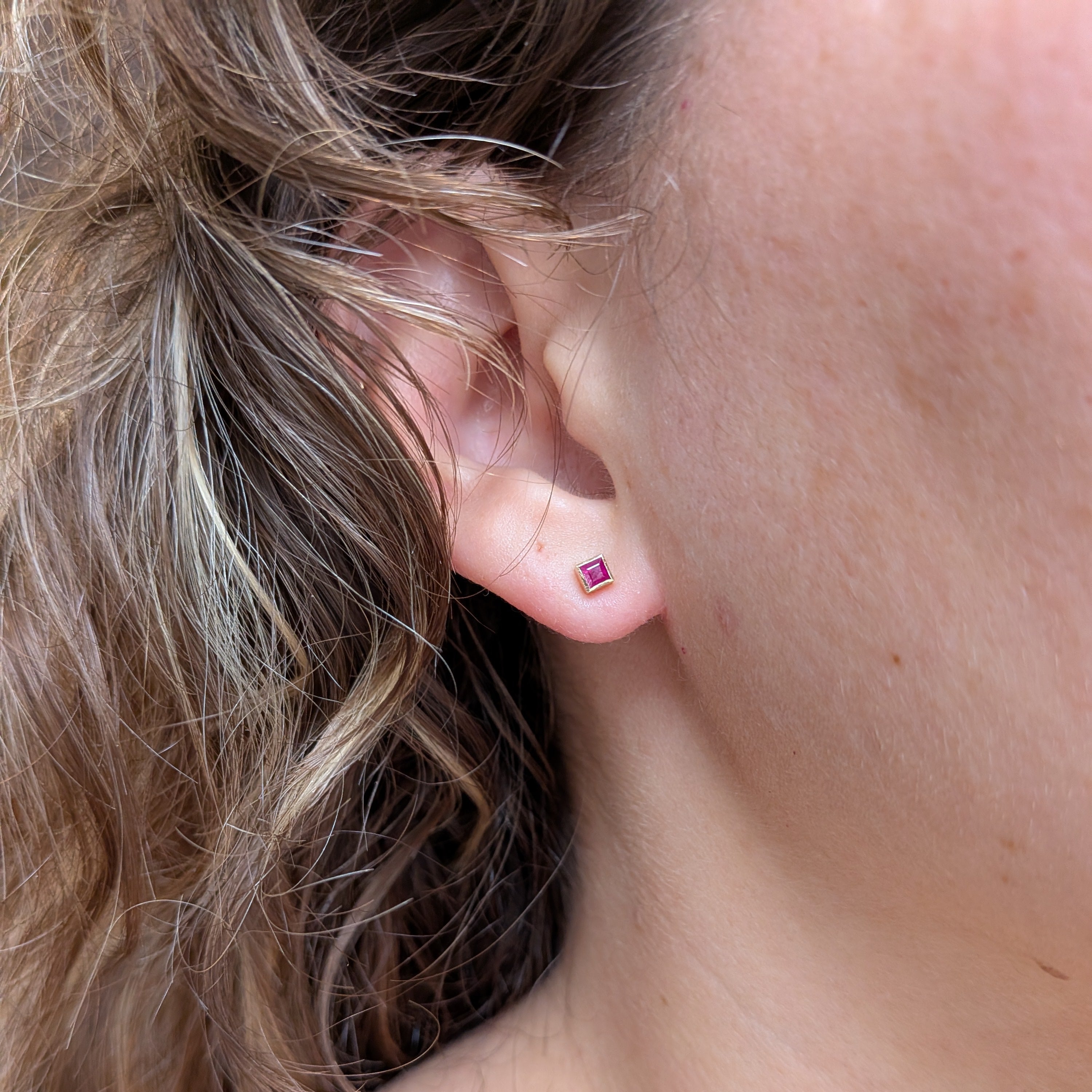 Minimal staple stud earrings to mix into your earring collection. Wear them on their own for their elegant simplicity, or add to an ear stack for a pop of bold color. Deep red anthill garnets are set into clean golden bezels.