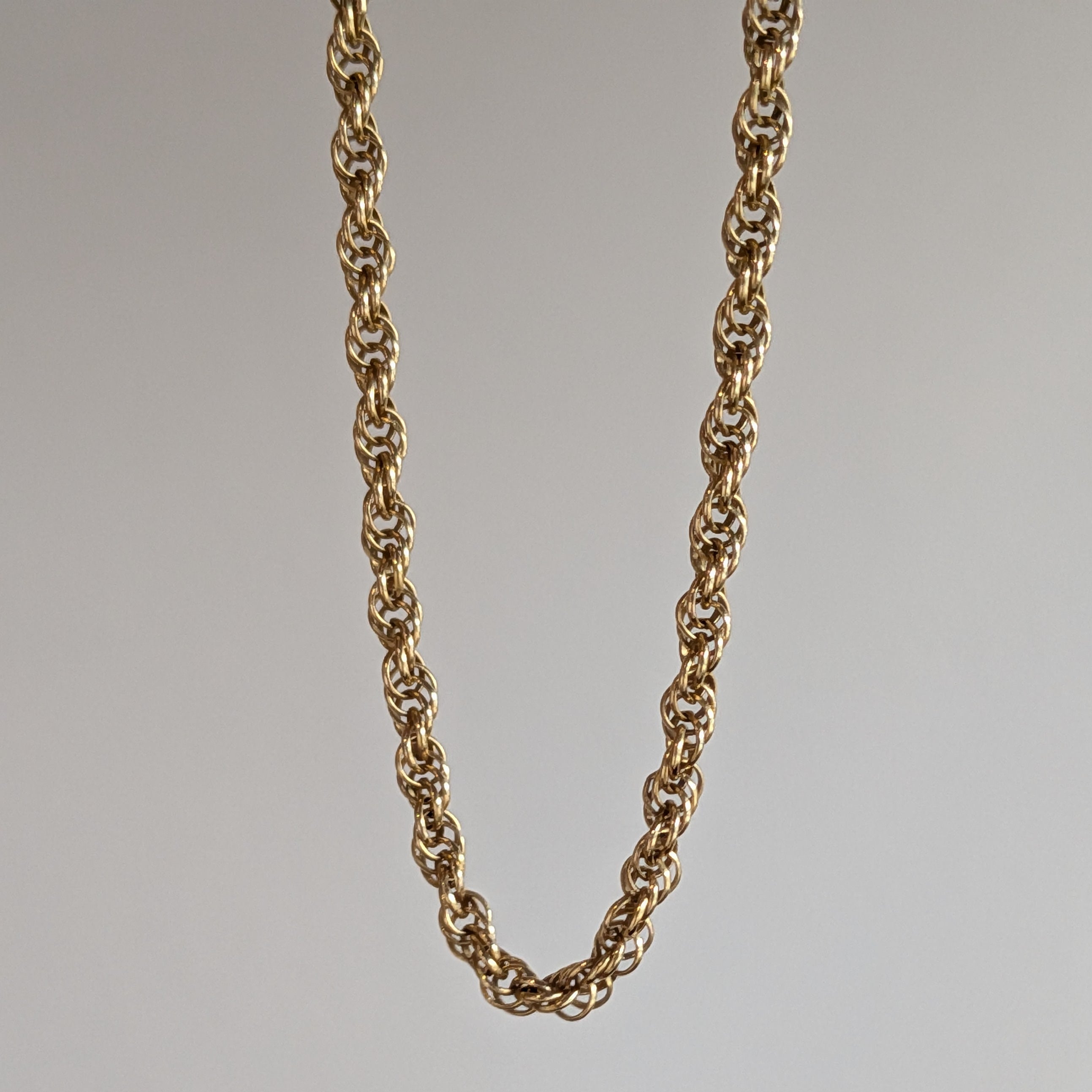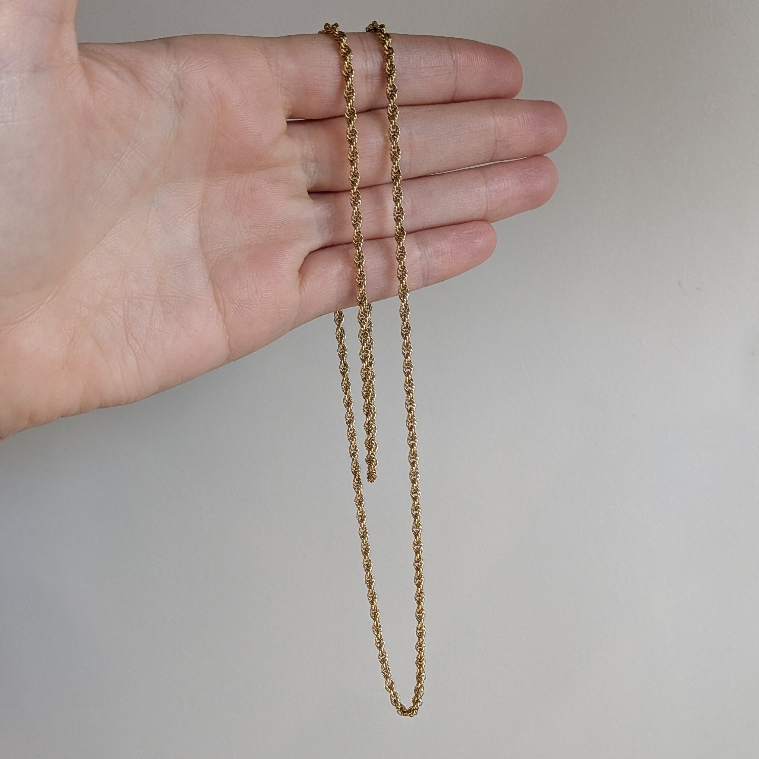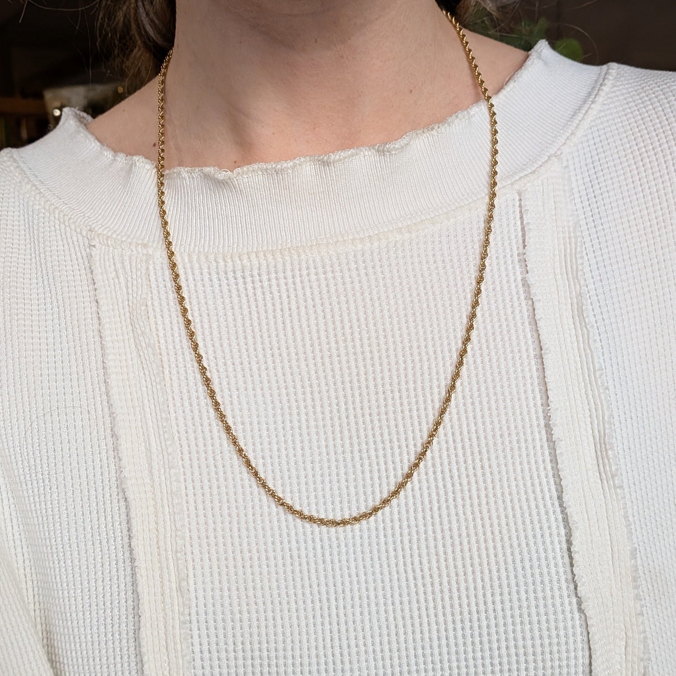 Classic long rope chain in 14k yellow gold, stunning on its own or supporting your favorite pendant!