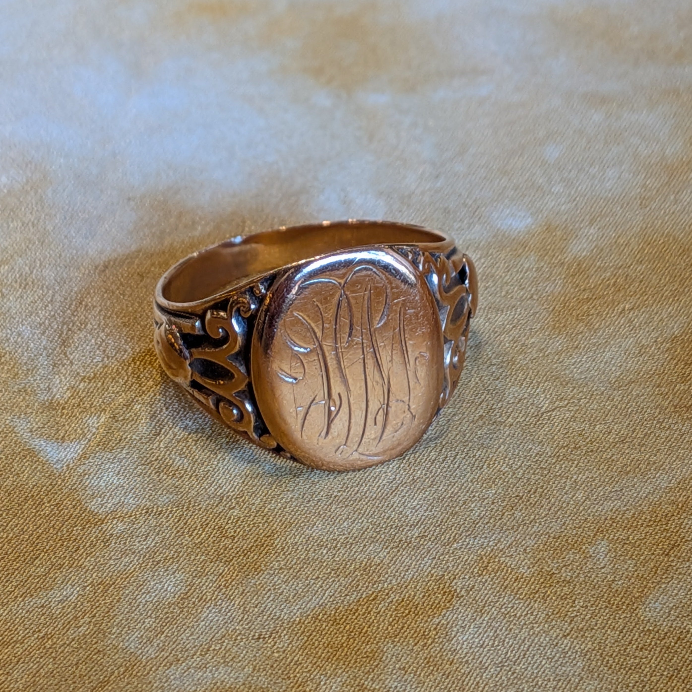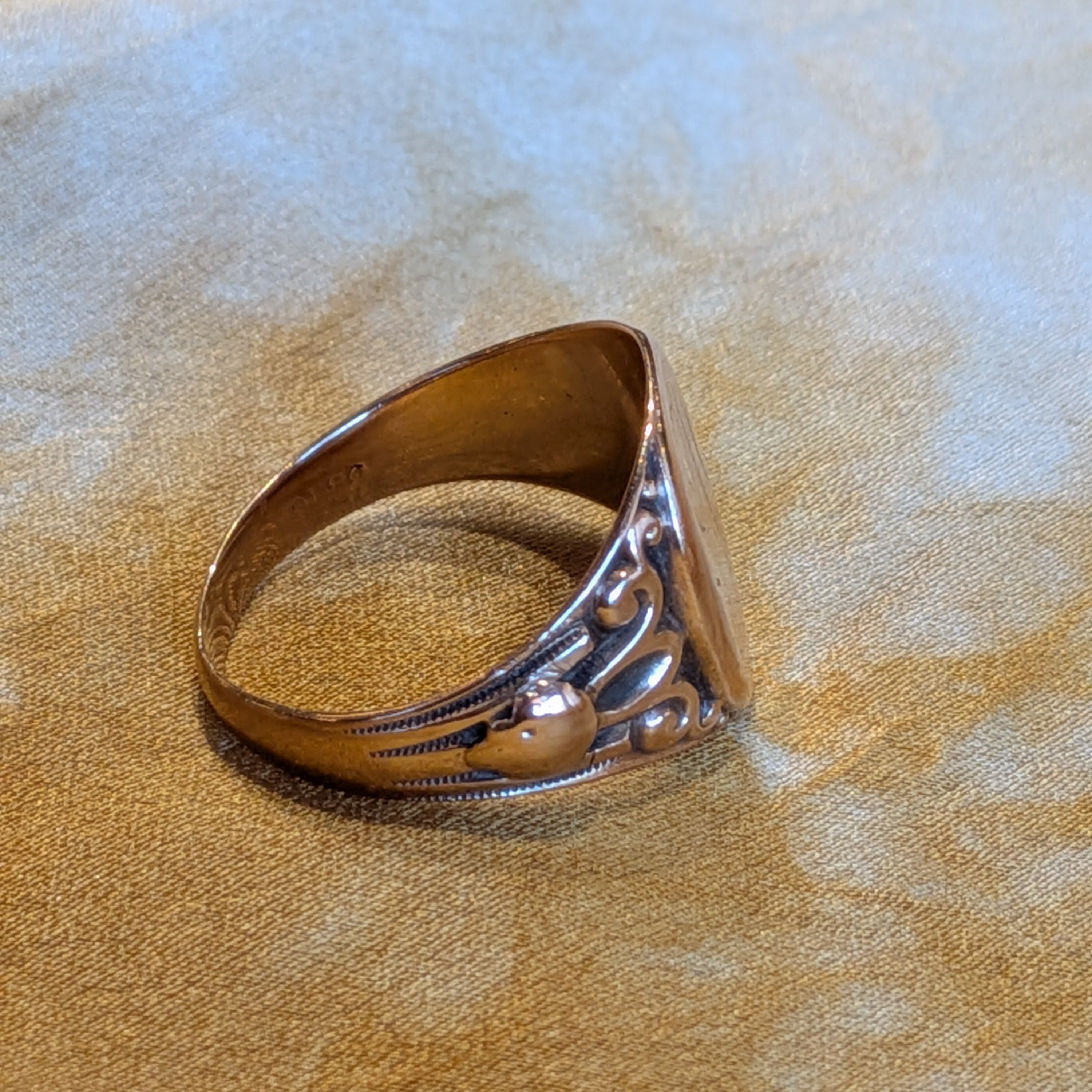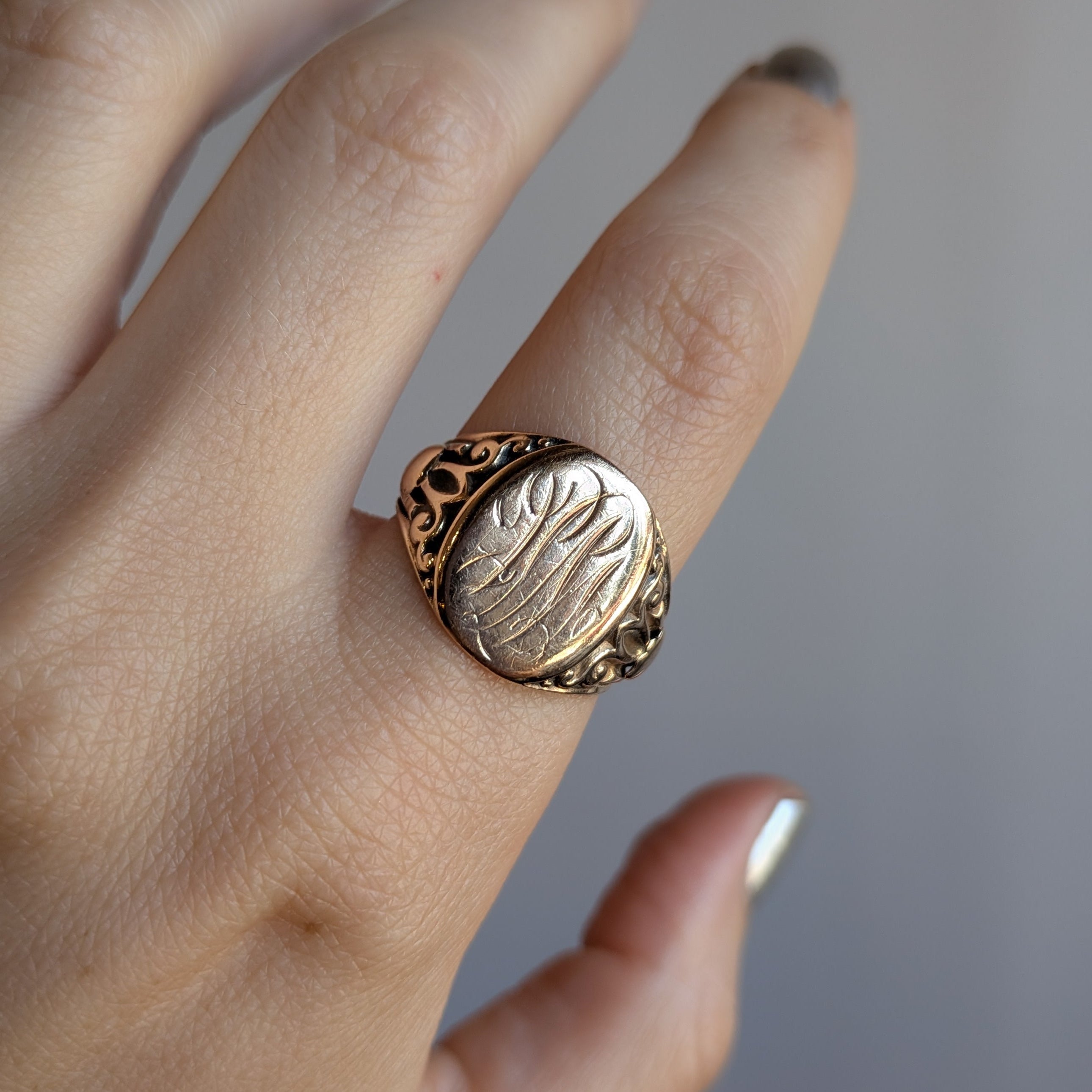 This signet is stunning with its existing monogram, evocative of its history and previous life. If you prefer a blank slate, just shoot us an email and we can polish it out for you.