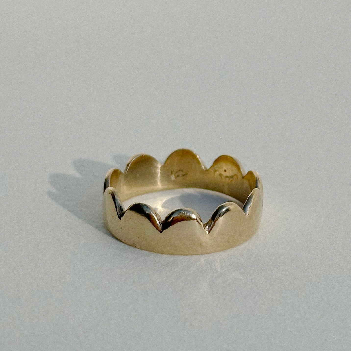Cast in 14k yellow gold, the scalloped edge evoke an understated yet playful crown.