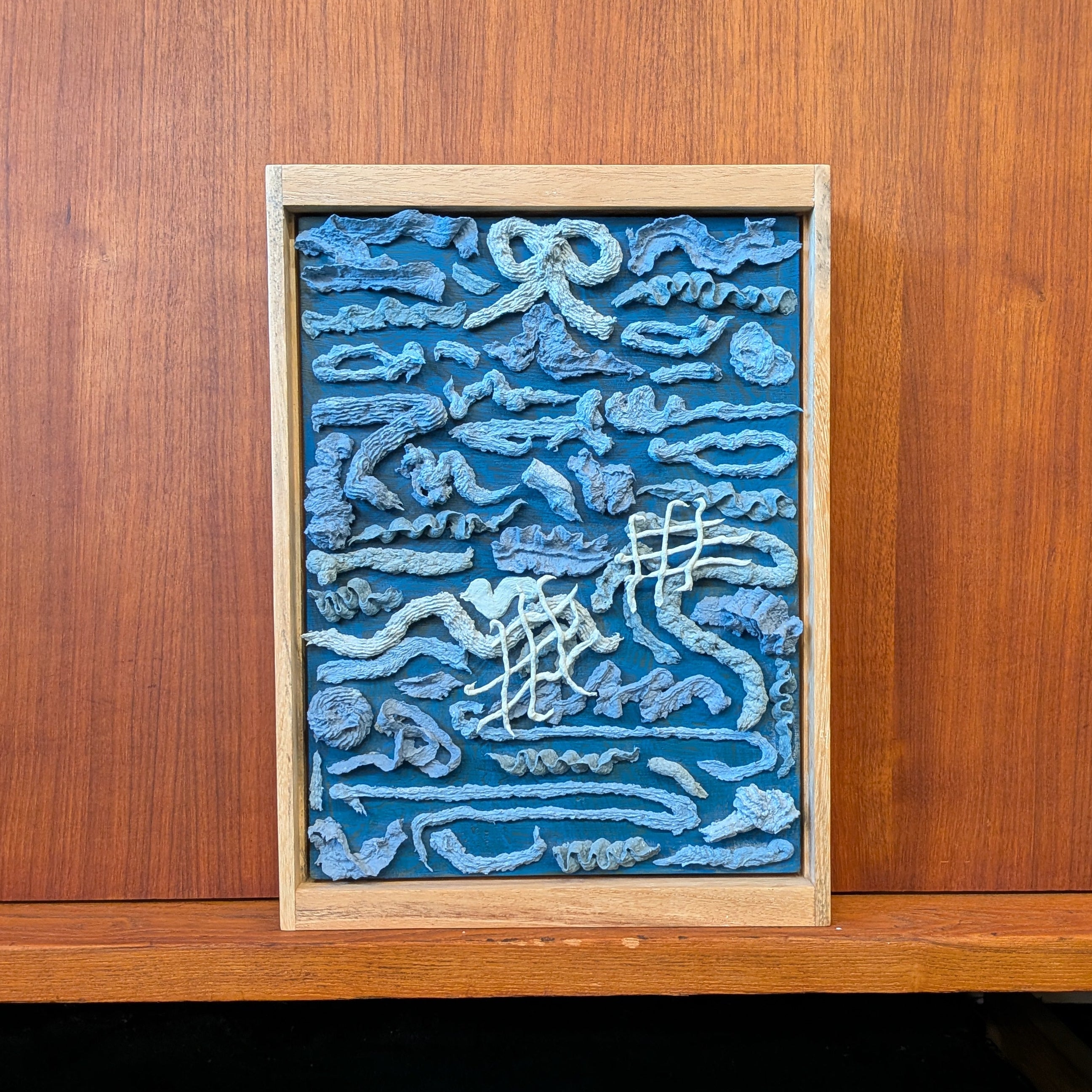 Sea GiftsAcrylic paint, paper clay on wood panel, framed by Oliver Wilson