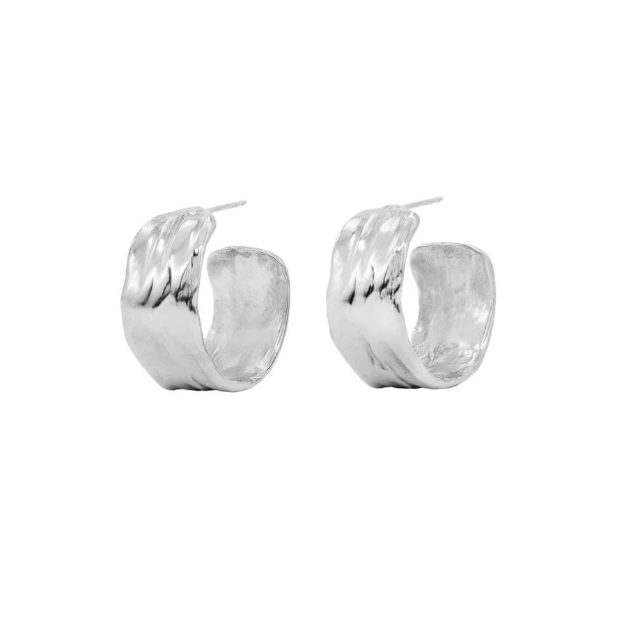 Extra wide, sterling silver cuff hoop earrings with fluid texture.
