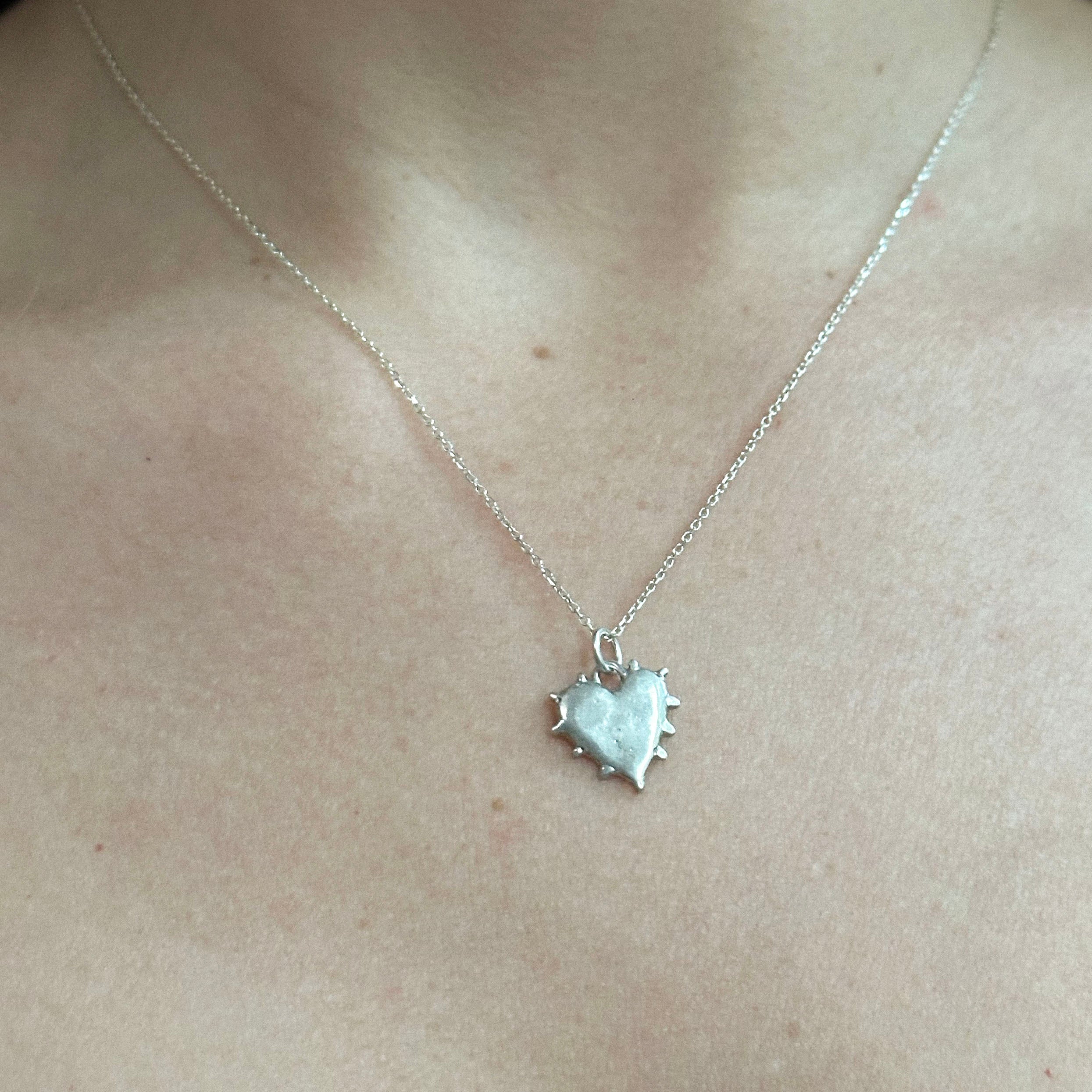 A symbol of devotion and resilience. This heart pendant, edged with studded spikes, embodies the beauty of being both scarred and strong after heartbreak. It’s a piece for those who’ve loved deeply, lost fiercely, and emerged sharper for it. Wear it as armor or as remembrance.
