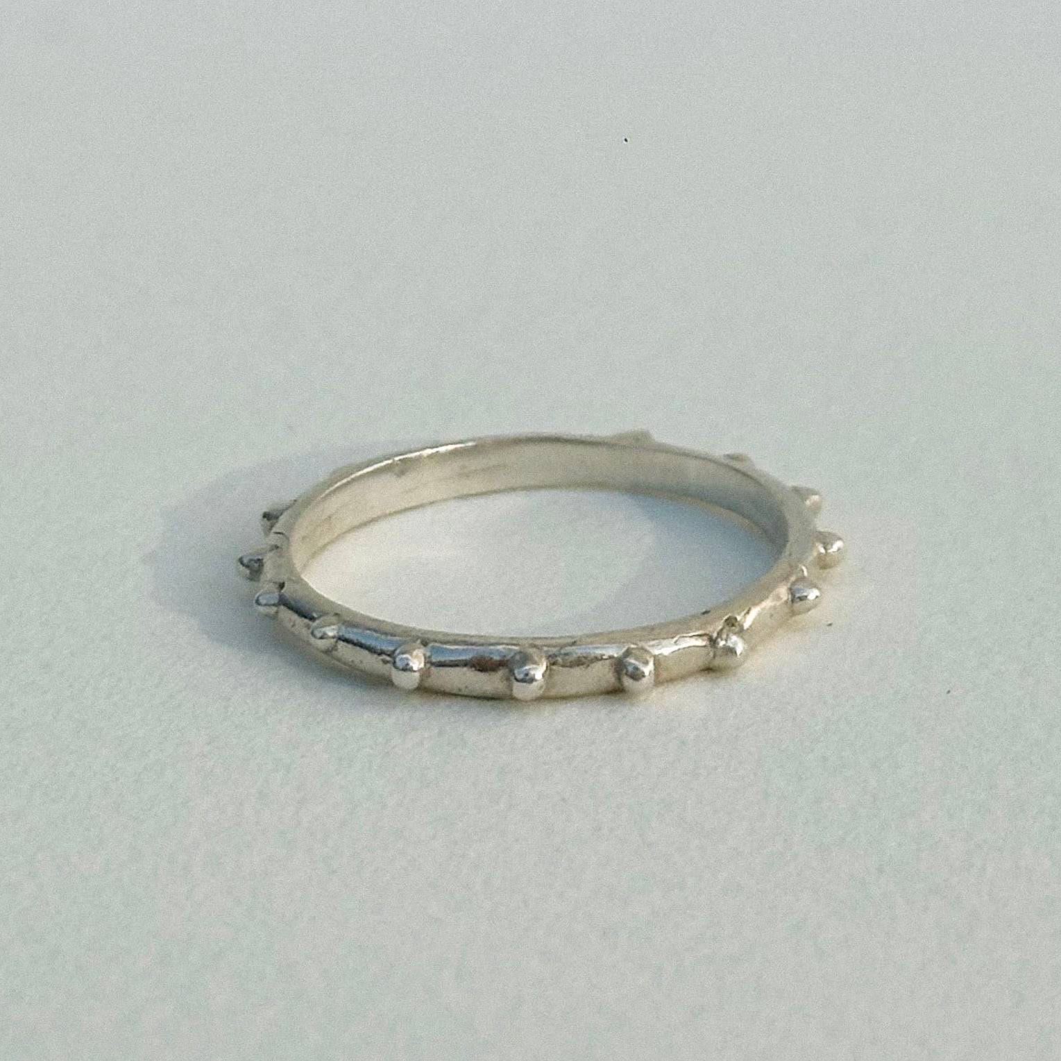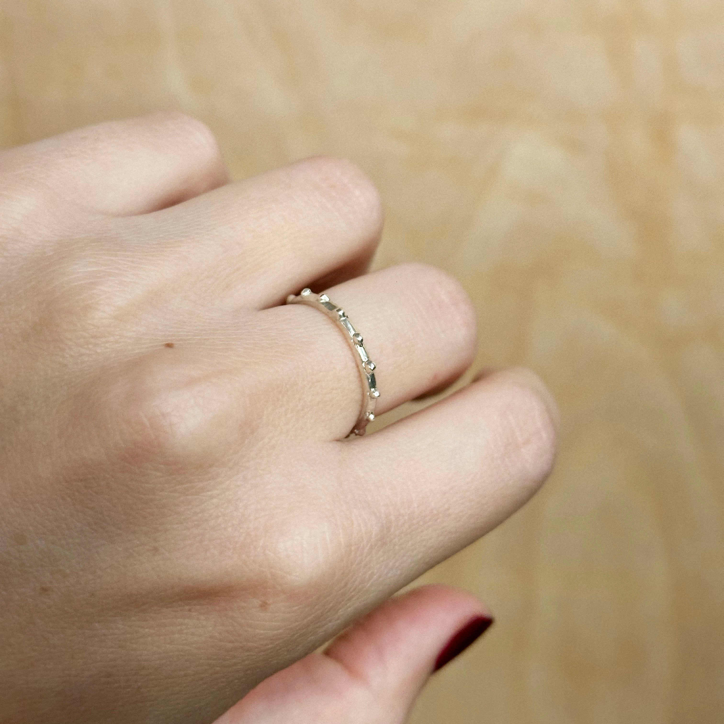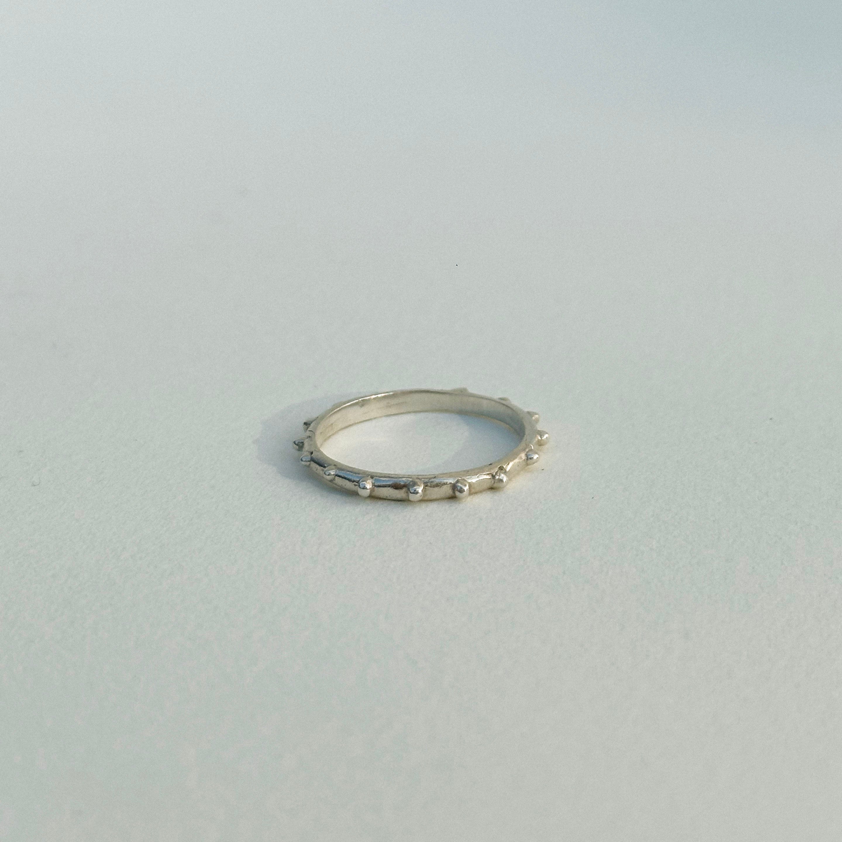 It's okay to have a some rough edges. The jaded rings add playful texture to any stack. cast in sterling silver, soft sculpted studs wrap around the full circumference of the ring.
