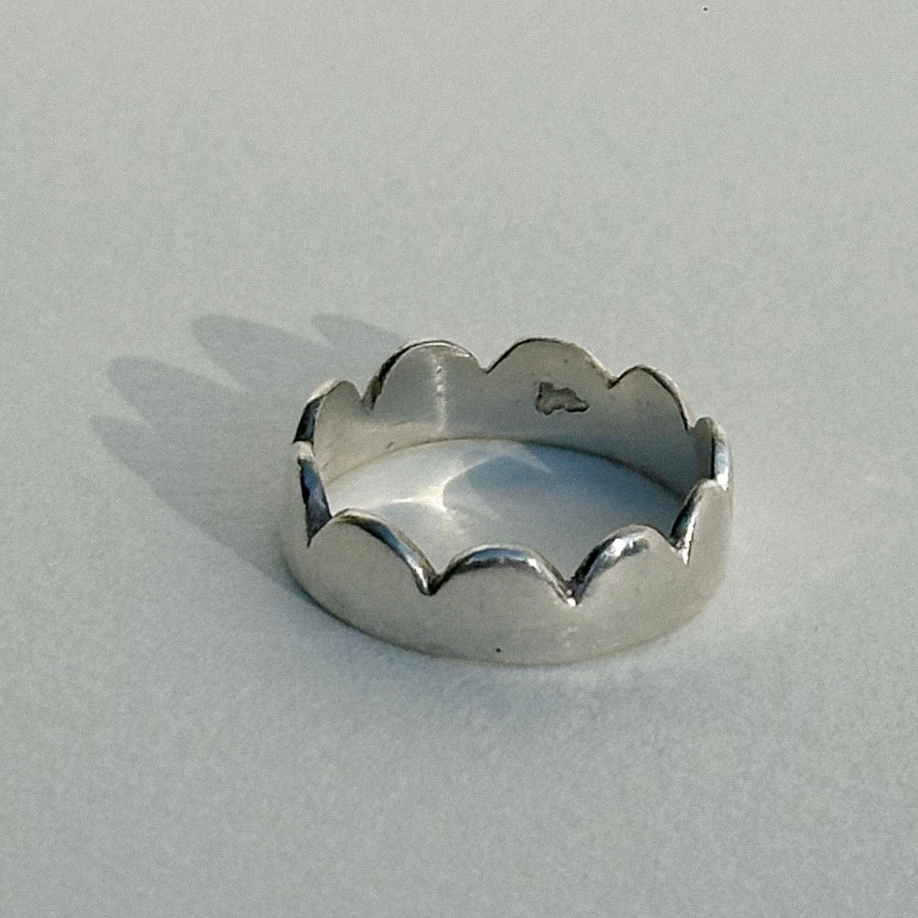 Cast in bright sterling silver, the scalloped edge evoked the details of an understated yet playful crown.
