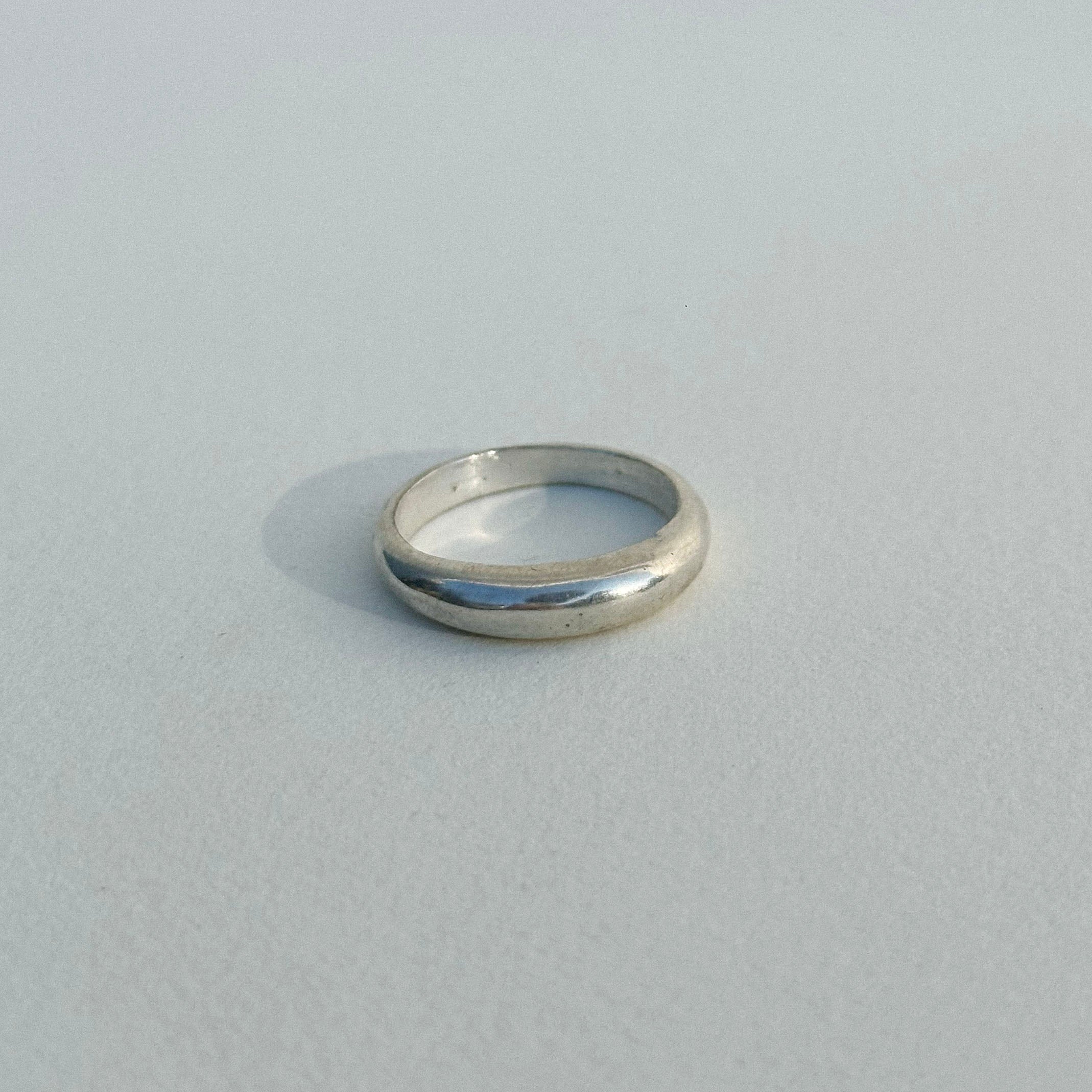A study in light and form. This ring features a smooth, rounded dome of bright sterling silver — cool, reflective, and weighty in all the right ways. A sculptural statement piece that elevates the everyday.