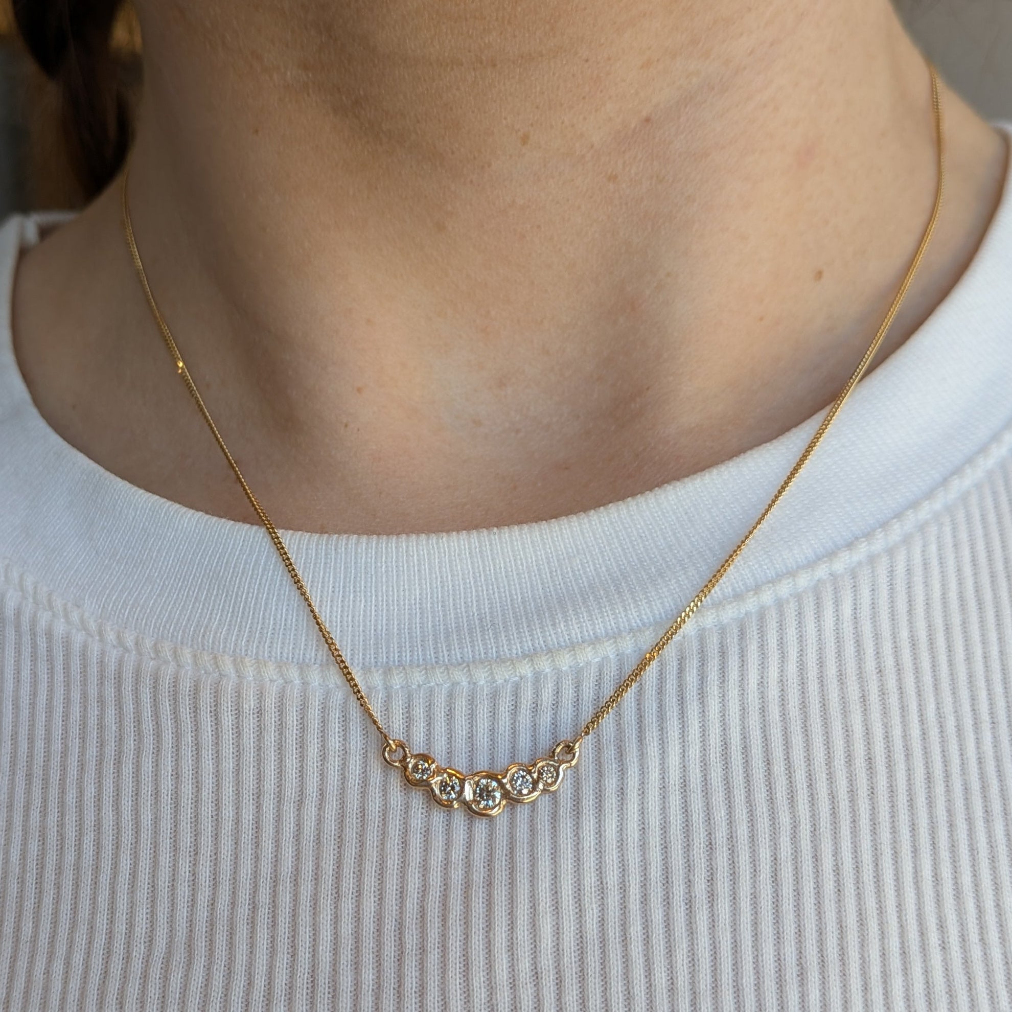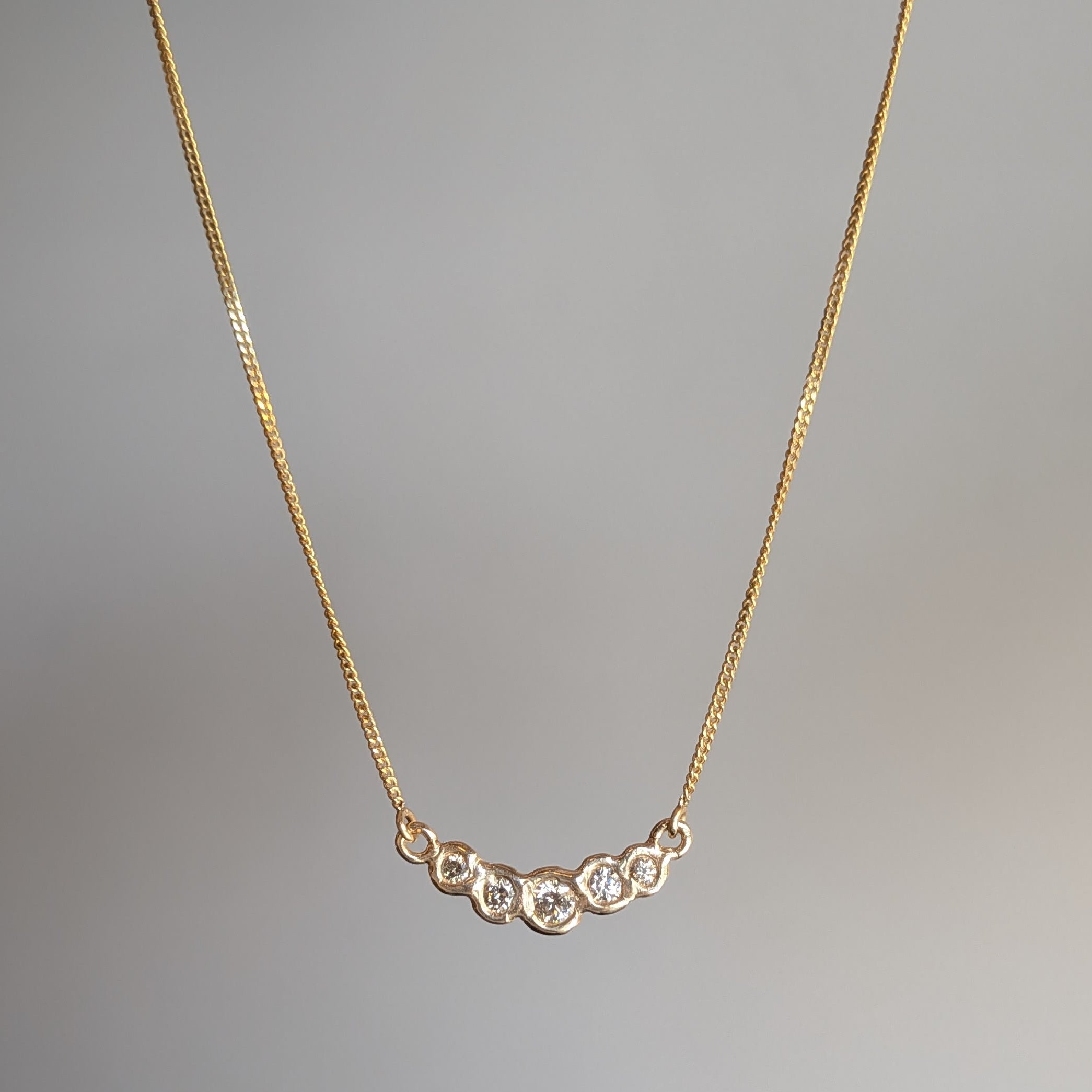 Champagne diamonds are cast in place and enveloped with gold to form this eye catching and playful pendant.