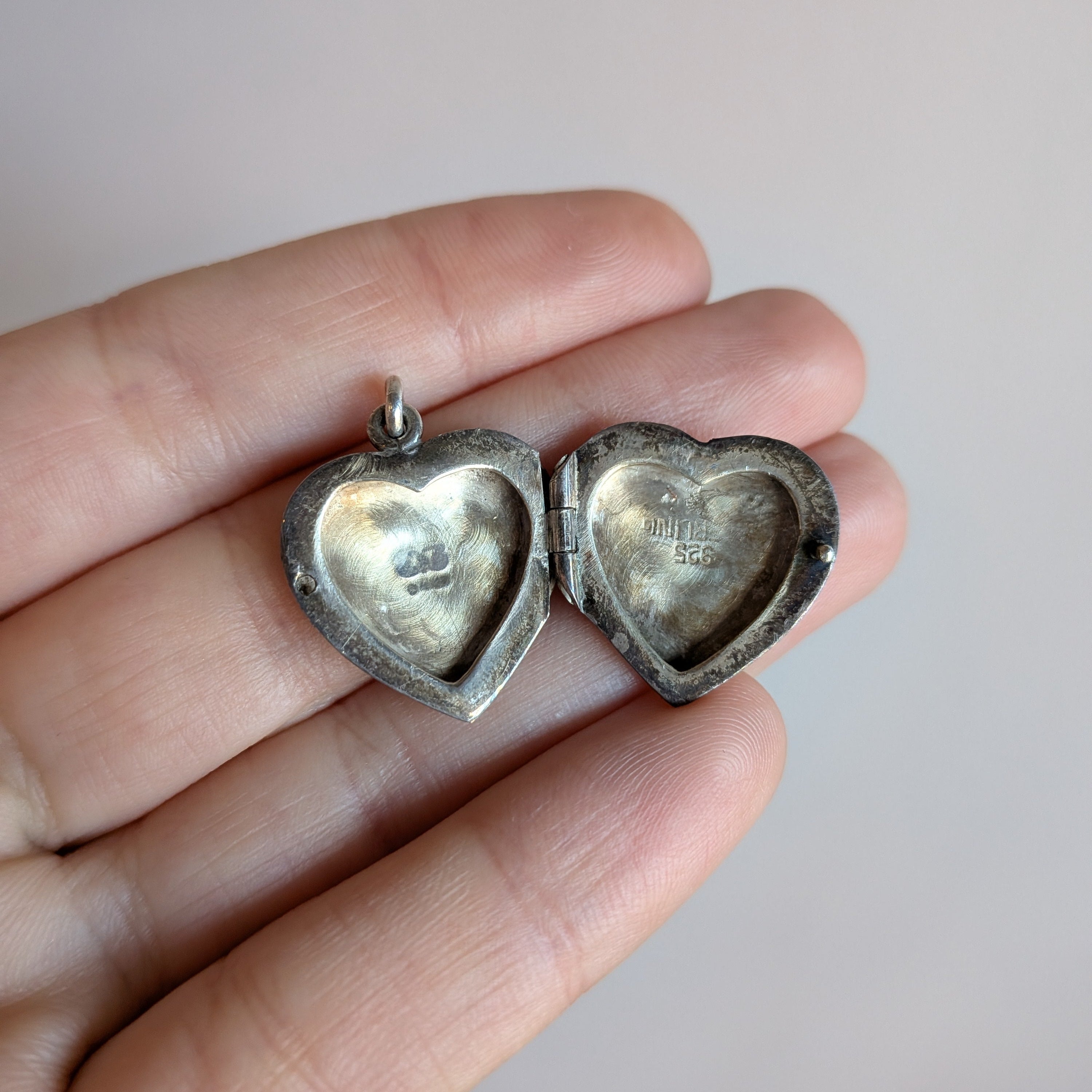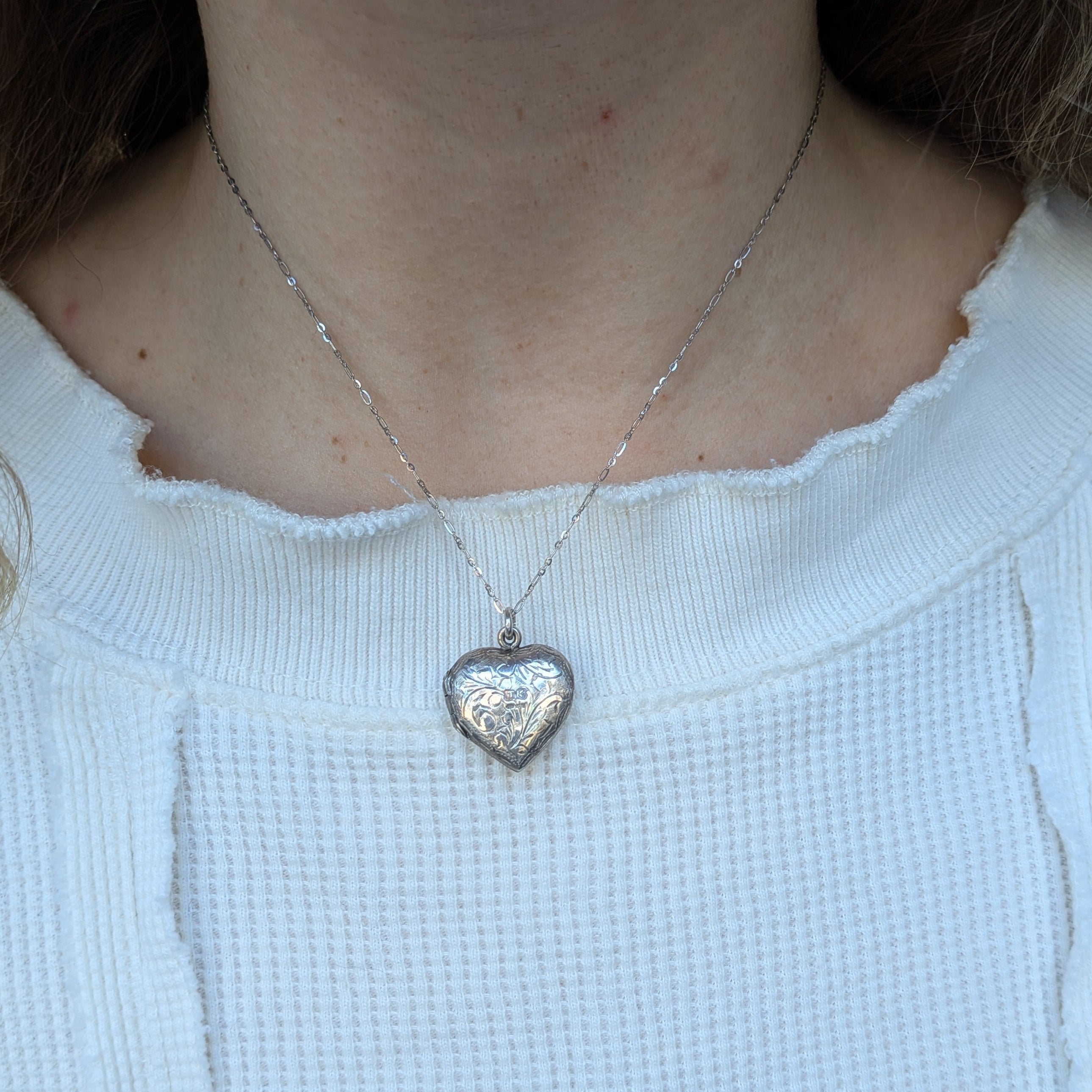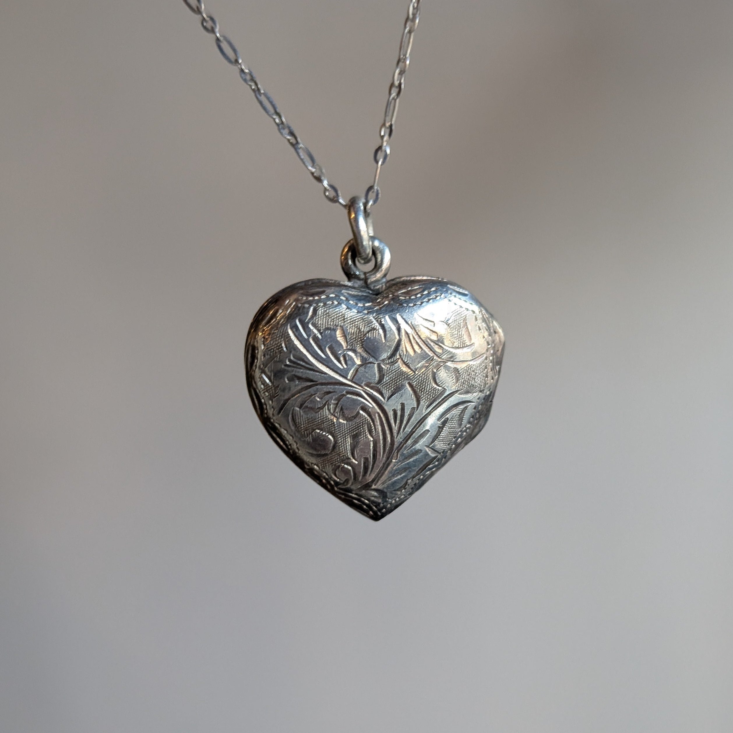 A sweet heart locket etched with floral detailing.